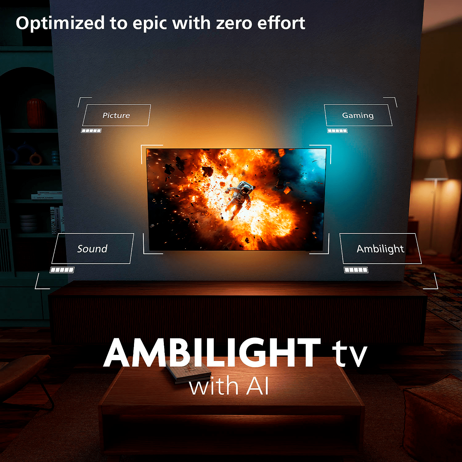 Ambilight-ominaisuudet: : Pelitila, Mukautuu seinän väriin, Aamuherätys, Musiikkitila, Ambilight Suite