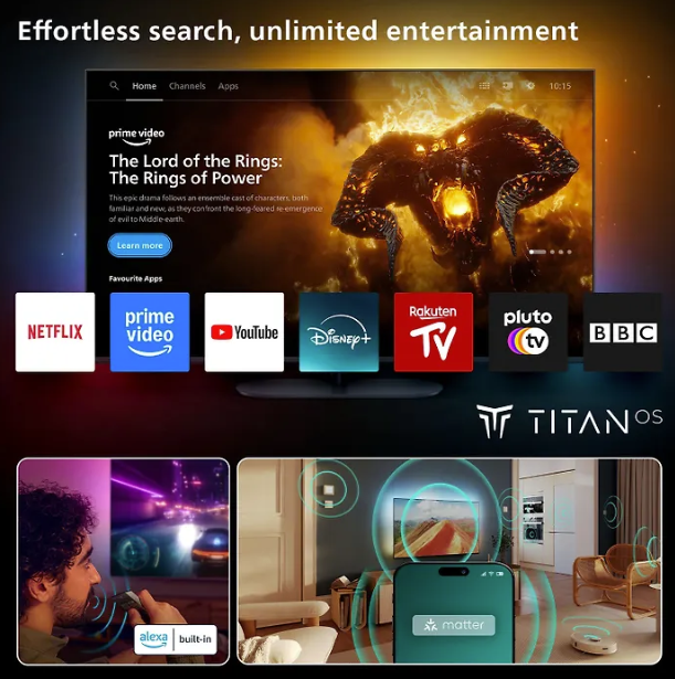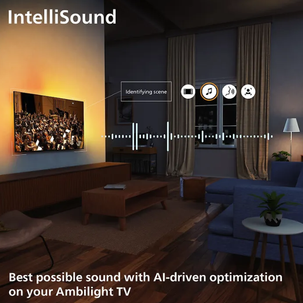 Ambilight-ominaisuudet: : Pelitila, Mukautuu seinän väriin, Aamuherätys, Musiikkitila, Ambilight Suite