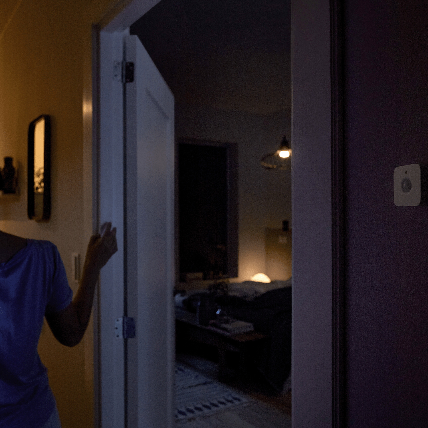 Hue-liiketunnistin mahdollistaa valojen automaattisen syttymisen haluamallasi kirkkaudella. Illalla voit määrittää pehmeän yövalon, joka helpottaa liikkumista pimeässä, kun taas päivällä kotisi täyttyy kirkkaalla valkoisella valolla. Tunnistimen integroitu päivänvalotunnistin varmistaa, että valot syttyvät vain tarvittaessa, ja valoherkkyyttä voi säätää Philips Hue -sovelluksessa.