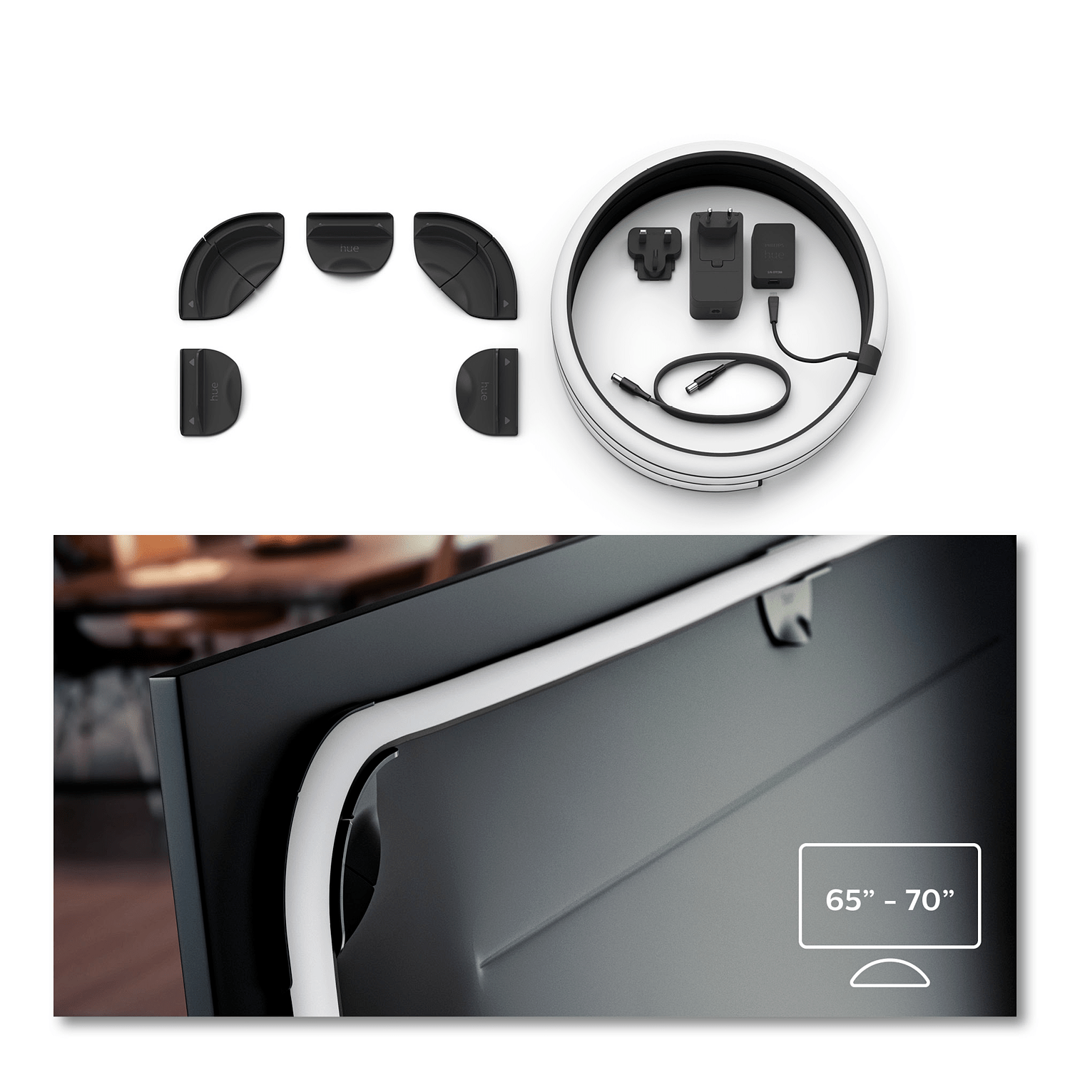 Valonauha on saatavilla kolmessa eri pituudessa, jotka sopivat 55, 65 ja 75 tuuman televisioihin. Nauha jaetaan kolmeen osaan: kaksi sivuille ja yksi yläreunaan. Asennus on helppoa mukana tulevilla kiinnikkeillä, ja valonauhan voi kiinnittää myös muihin pintoihin. Nauhaa ei voi jatkaa tai lyhentää, joten oikean koon valinta on tärkeää.