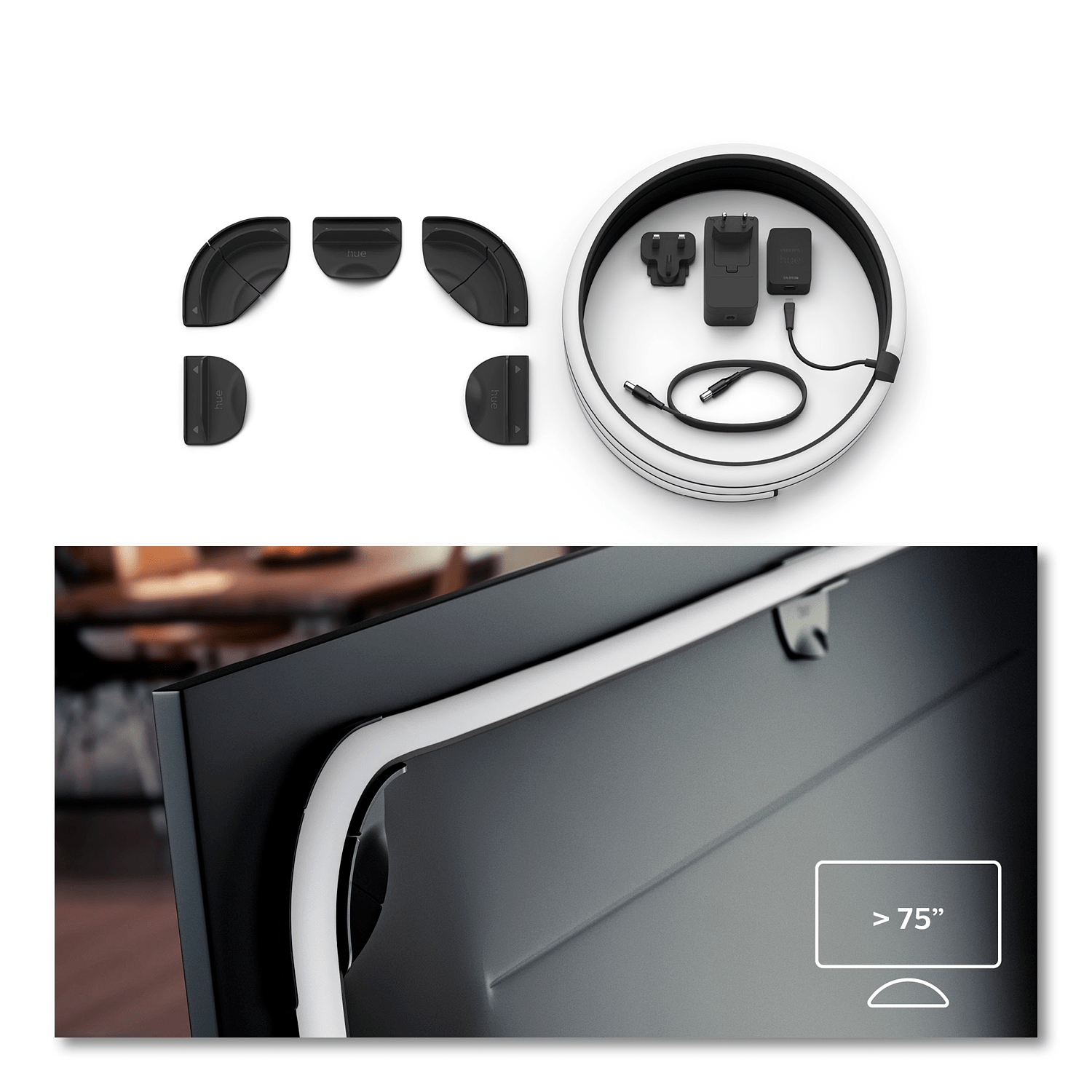 Valonauha on saatavilla kolmessa eri pituudessa, jotka sopivat 55, 65 ja 75 tuuman televisioihin. Nauha jaetaan kolmeen osaan: kaksi sivuille ja yksi yläreunaan. Asennus on helppoa mukana tulevilla kiinnikkeillä, ja valonauhan voi kiinnittää myös muihin pintoihin. Nauhaa ei voi jatkaa tai lyhentää, joten oikean koon valinta on tärkeää.