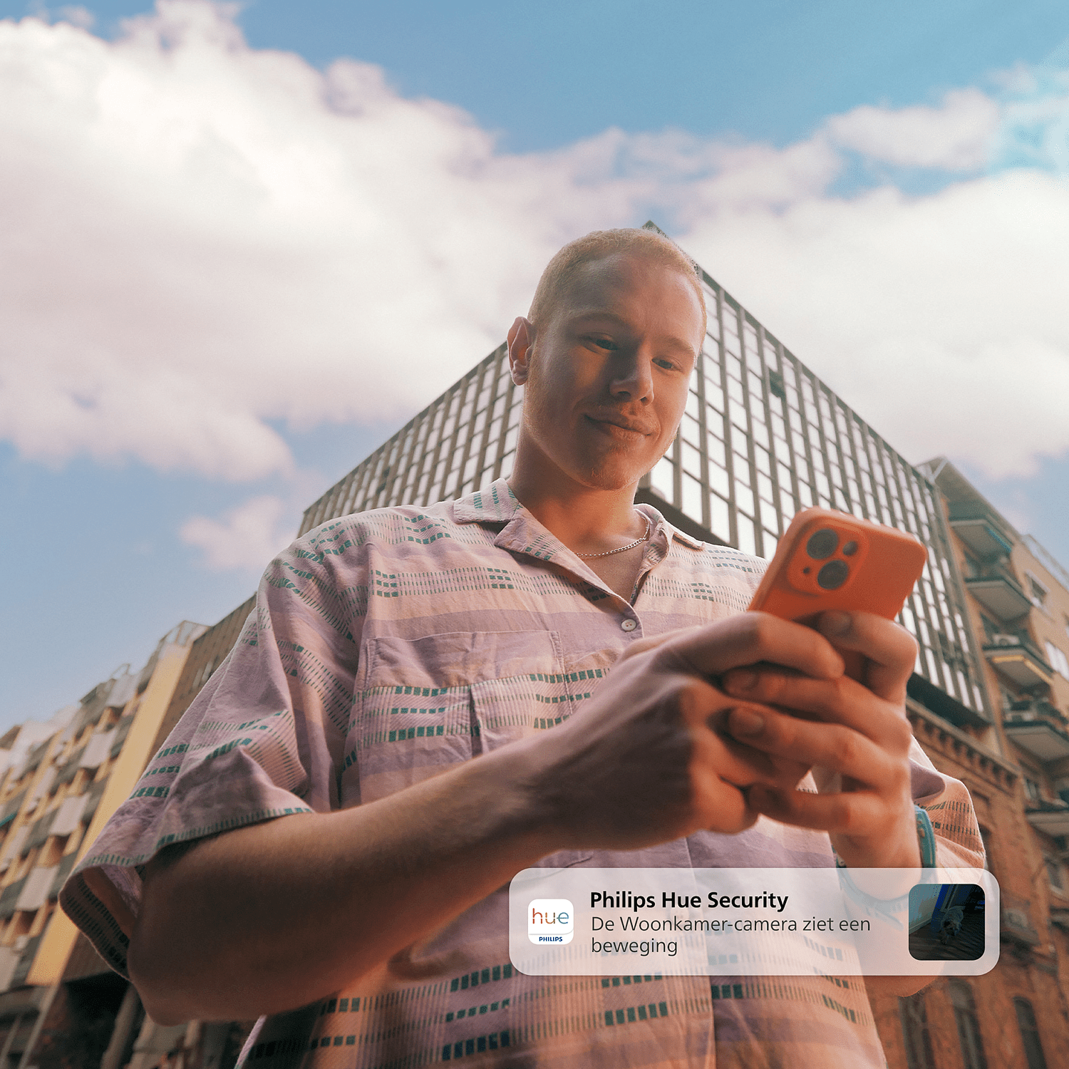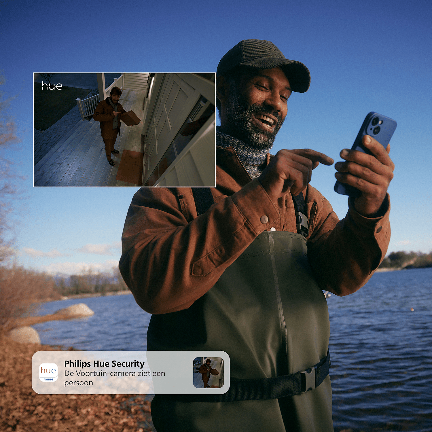 Kun kamera havaitsee liikettä tai ääntä, saat välittömästi ilmoituksen mobiililaitteeseesi. Voit aktivoida valo- ja äänihälytykset, puhua kaksisuuntaisen puhetoiminnon avulla tai tarvittaessa hälyttää viranomaiset. Hue-sovellus tarjoaa helpon ja nopean tavan reagoida tilanteisiin riippumatta siitä, missä olet.