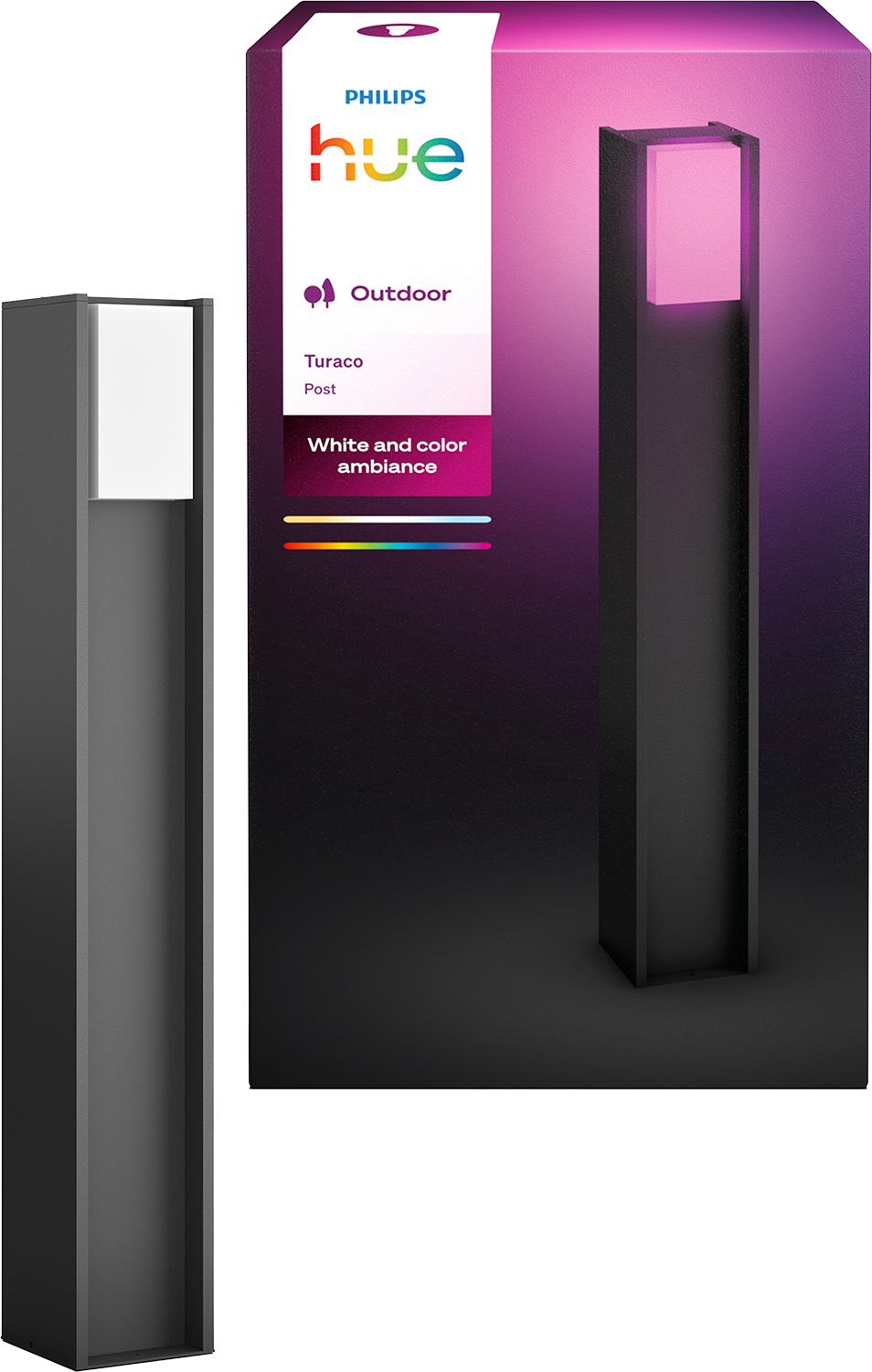 Philips Hue Turaco pylväsvalaisin tarjoaa modernia ja monikäyttöistä valaistusta ulkotiloihin, kuten sisäänkäynneille, pihateille ja puutarhaan. Se kuuluu White and color ambiance -sarjaan, joten voit säätää sekä valkoisen valon lämpötilaa että valita miljoonista väreistä juuri oikean tunnelman. Valaisin tuottaa kauniin epäsuoran valon, joka auttaa liikkumaan ulkona ja tuo pihan yksityiskohdat esiin miellyttävästi.