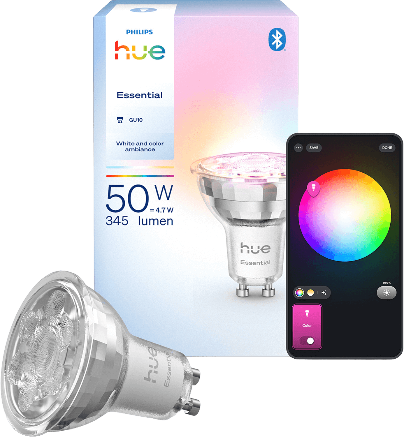 Ääniavustajat: Amazon Alexa, Apple HomeKit (Hue-sillan kautta), Google Assistant, Microsoft Cortana (Hue-sillan kautta)