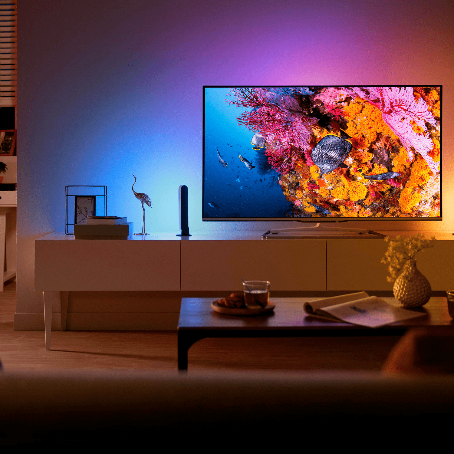 Yhdistämällä Hue Play -valopalkit Hue Bridgeen ja Hue Sync -ohjelmistoon saat valot synkronoimaan elokuvien, pelien ja musiikin kanssa. Valaistus mukautuu reaaliaikaisesti sisällön tapahtumiin, mikä tekee katselukokemuksesta entistä immersiivisemmän. Näin olohuoneesi muuttuu hetkessä henkilökohtaiseksi elokuvateatteriksi, jossa tunnelma elää sisällön mukana.