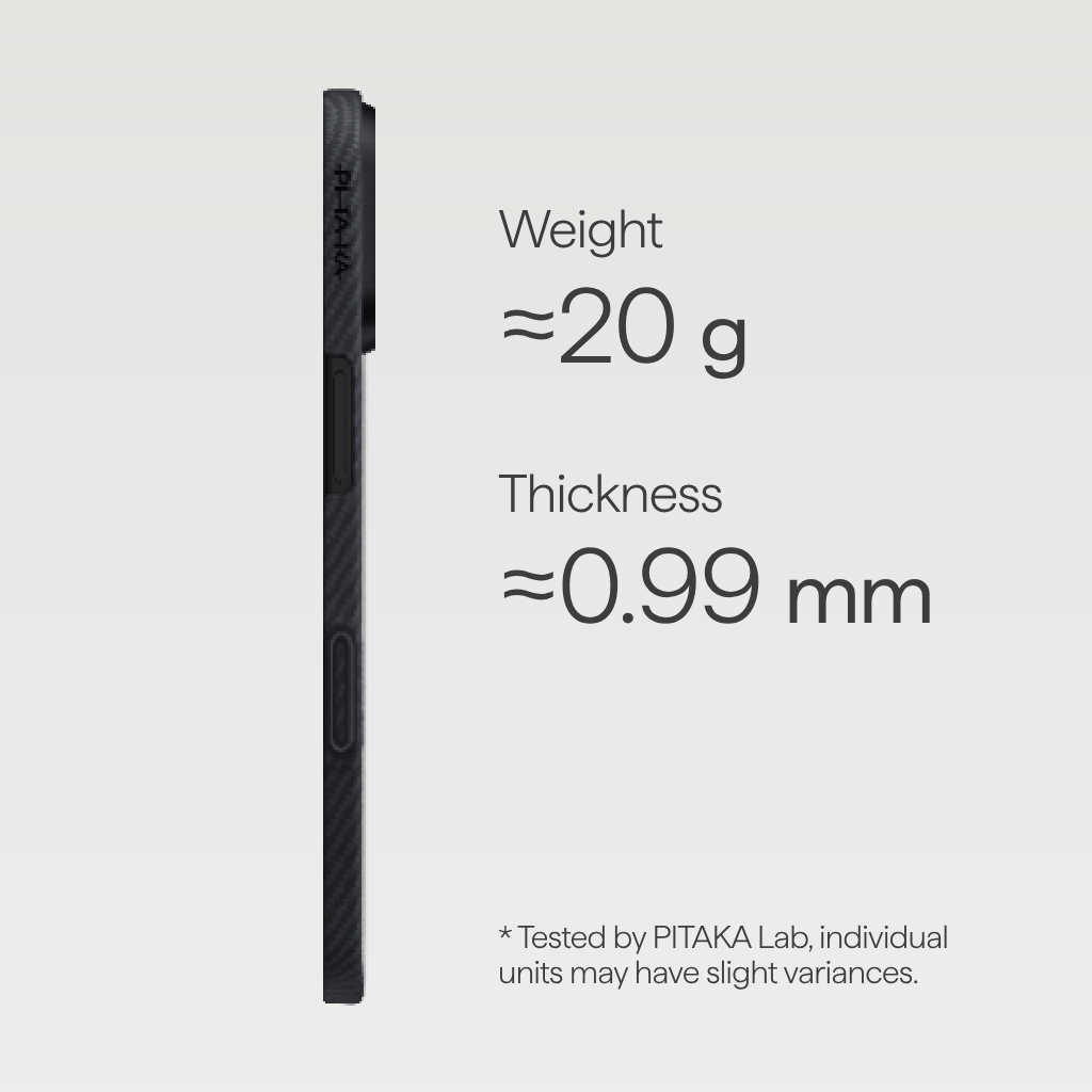 PITAKA Edge on minimalistinen ja ultrakevyt suojakuori, joka on valmistettu avaruusteollisuuden laatuisesta aramidikuidusta. Se tarjoaa vahvan suojan säilyttäen puhelimen alkuperäisen tuntuman. Integroitu Aaron Button tuo käyttöösi älykkäät, mukautettavat fyysiset pikapainikkeet - nopeammin ja intuitiivisemmin kuin kosketusnäytöllä.