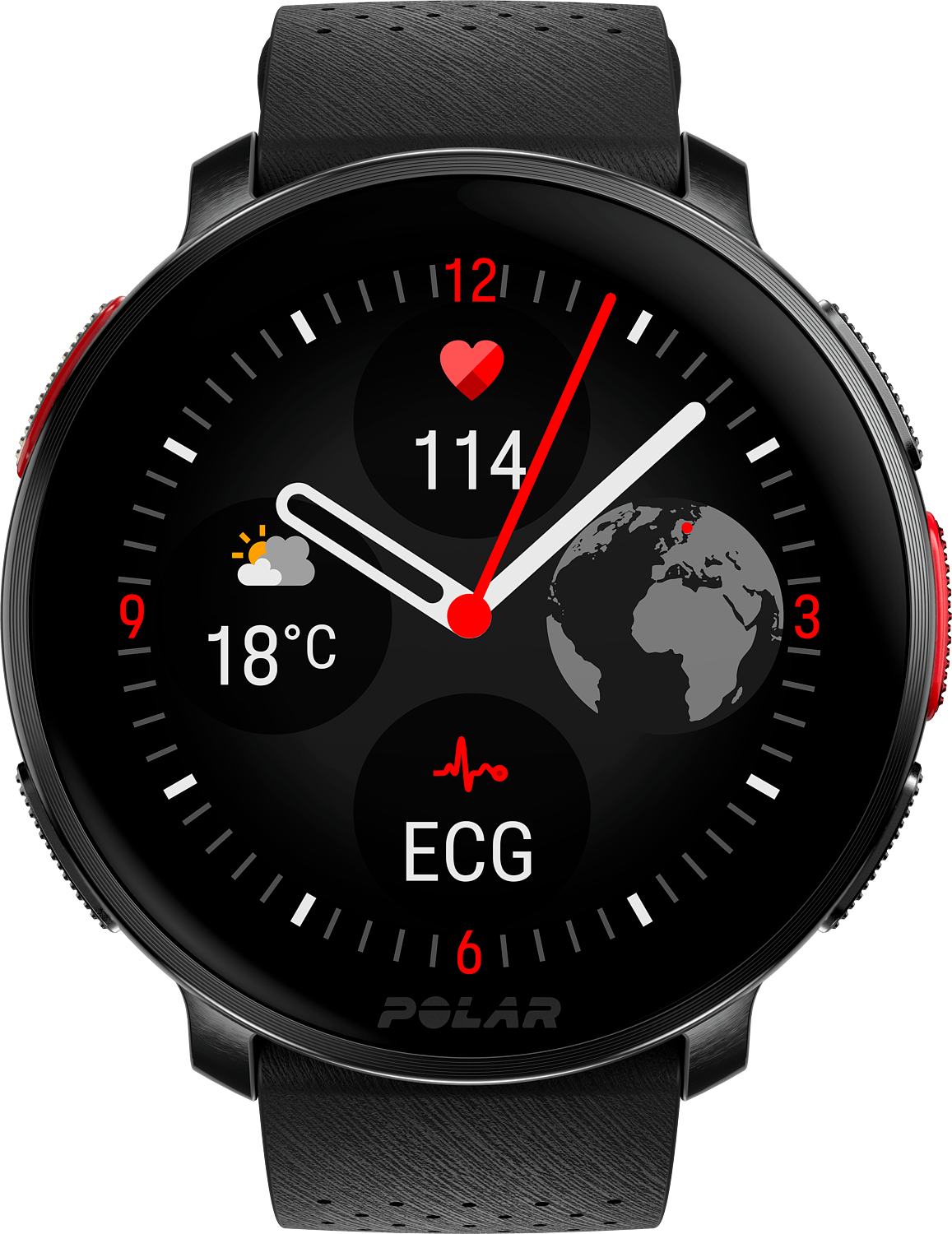 EKG-sensori lukee sydämen tuottaman sähköisen impulssin mahdolliset poikkeavuudet sykkeessäsi ja palautumisessasi ilman rinnan ympärille kiinnitettävää sykevyötä. Aseta sormesi kellon napille, niin saat EKG-lukeman sekunneissa.
