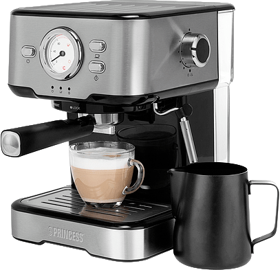 Tunne olosi todelliseksi baristaksi kotona. Princess Espressokeitin tuo aidon kahvilatunnelman keittiöösi. Tyylikäs ja tehokas laite valmistaa aromikasta espressoa yhdelle tai kahdelle kupilliselle. 20 baarin pumppu takaa täydellisen paineen ja maksimaalisen makuelämyksen. Lisäksi integroidun maitovaahdottimen avulla valmistat helposti cappuccinot, latte macchiatot ja muut suosikkijuomasi.