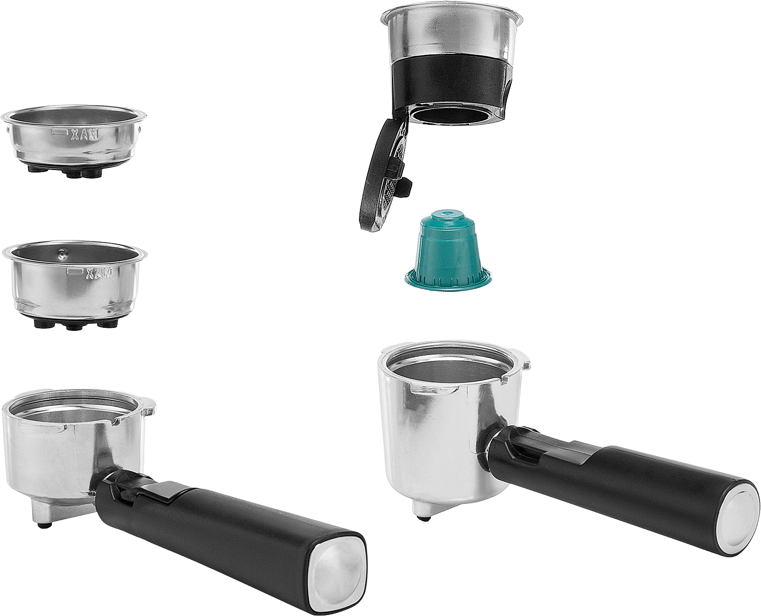 Mukana kolme suodatinta: yhdelle kupille, kahdelle kupille ja Nespresso-kapseleille. Suodatinpidikkeessä on kaksi nokkaa, joten voit valmistaa kaksi espressoa samanaikaisesti.