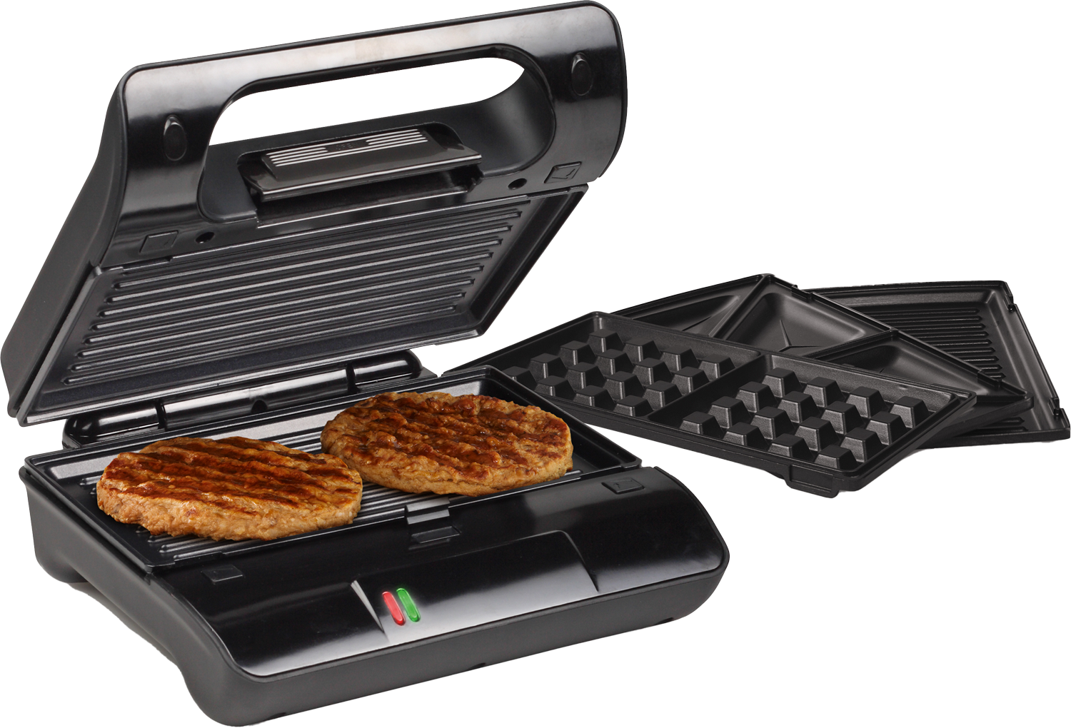 Vaihdettavat grillilevyt; grilliparila, voileipä sekä vohvelilevyt