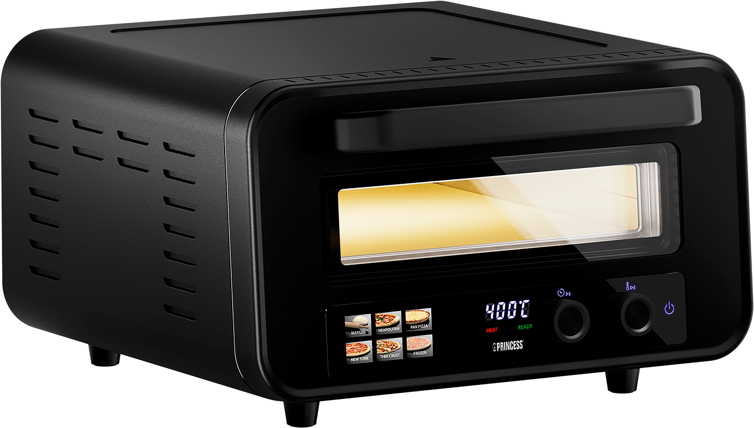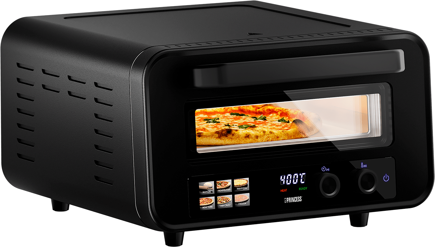 Nauti autenttisista, rapeapohjaisista pizzoista missä ja milloin haluat. Princess Pro Max Pizzauuni tuo ammattitason pizzanpaiston suoraan keittiöösi tai terassillesi. Tehokas 2100 W uuni yltää jopa 400 °C lämpötilaan, mikä takaa napolilaistyylisen rapean pohjan ja täydellisesti kypsyneet täytteet.