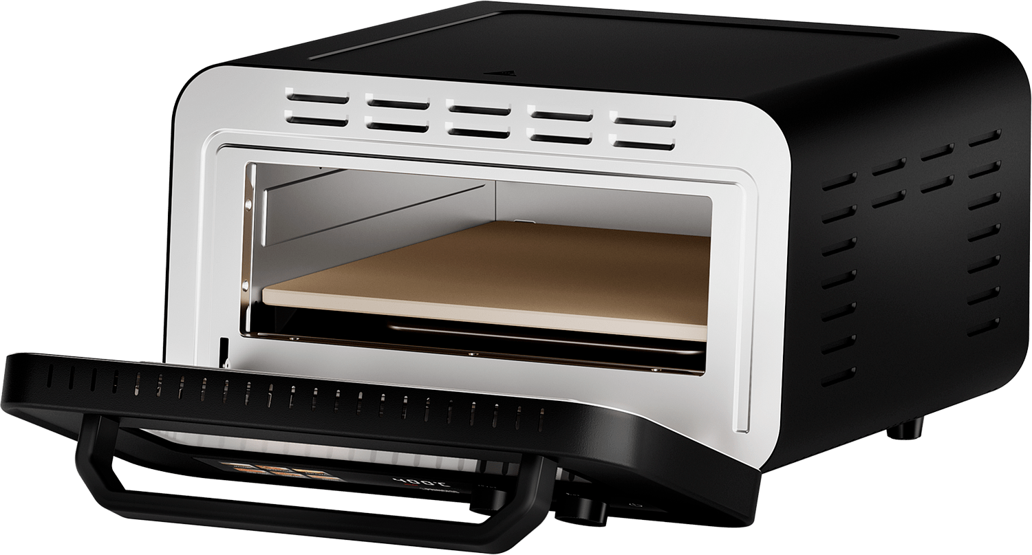 Digitaalinen kosketuspaneeli, säädettävä termostaatti ja ajastin tekevät käytöstä vaivatonta. Viisi esiasetusta eri pizzoille sekä manuaalinen ohjelma tarjoavat joustavuutta. Kaksinkertainen lasiovi säilyttää lämmön ja tehostaa paistoa, ja kompakti muotoilu sopii sekä sisä- että ulkokäyttöön.