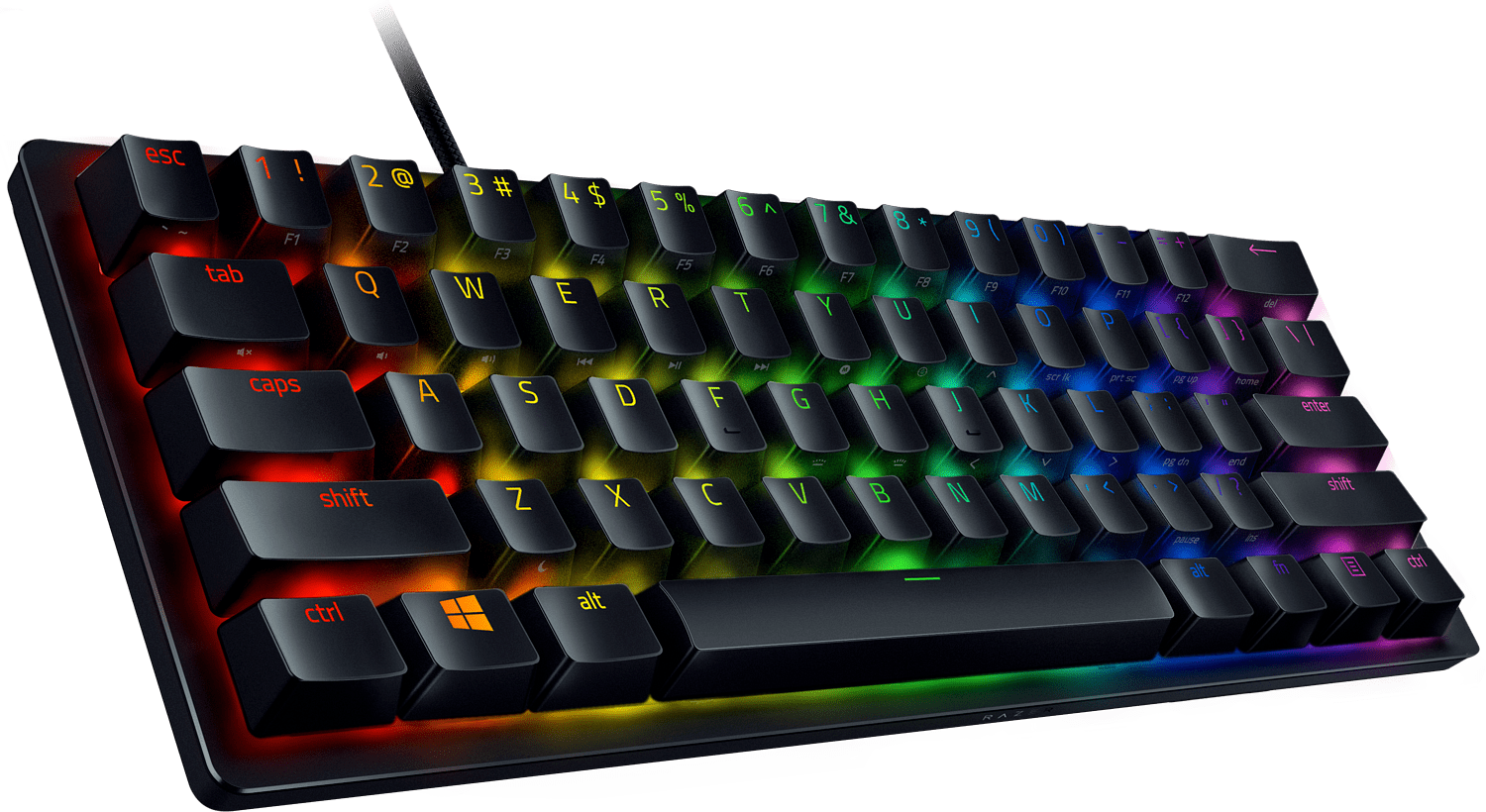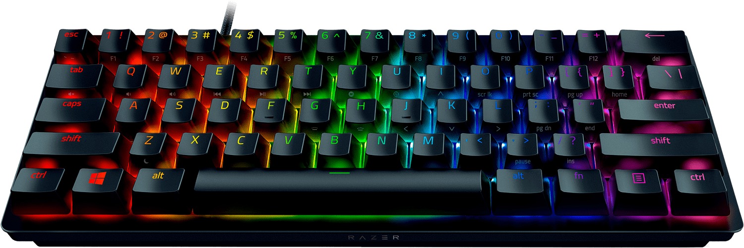 Razer Huntsman Mini on vaativaan pelikäyttöön suunniteltu 60%-kokoluokan pelinäppäimistö huippuluokan Razer Clicky Optical -kytkimillä. Pienen kokonsa ja suorituskykyisten kytkintensä lisäksi näppäimistö on varustettu kestävillä PBT Doubleshot -näppäinhatuilla, Chroma RGB -valaistuksella, ohjelmoitavilla painikkeilla sekä kestävällä alumiinirakenteella.