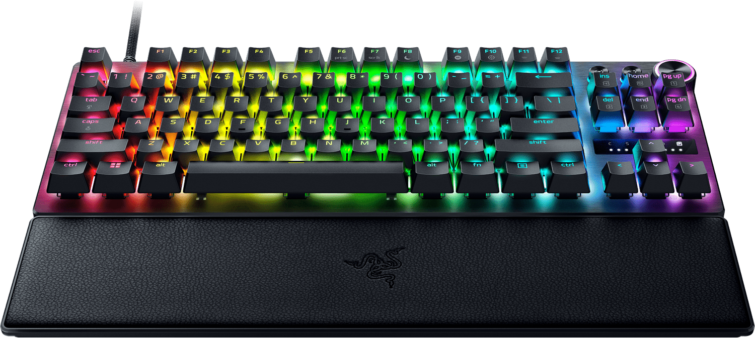 Nosta pelaamistasi välittömästi esports-pelinäppäimistöjen mestarilla Razer Huntsman V3 Pro Tenkeyless:lla. Rapid Trigger Mode -tilan avulla voit hyödyntää uusimpia analogisia optisia kytkimiämme ja suorittaa toistuvia painalluksia epäreilulla nopeudella. Näppäimistön runko on kestävää lentokonealumiinia harjatulla metalliviimeistelyllä. Kompakti muotoilu ilman numeronäppäimistöä vapauttaa enemmän tilaa hiiren liikkeille ja helpottaa näppäimistön mukana kuljettamista.