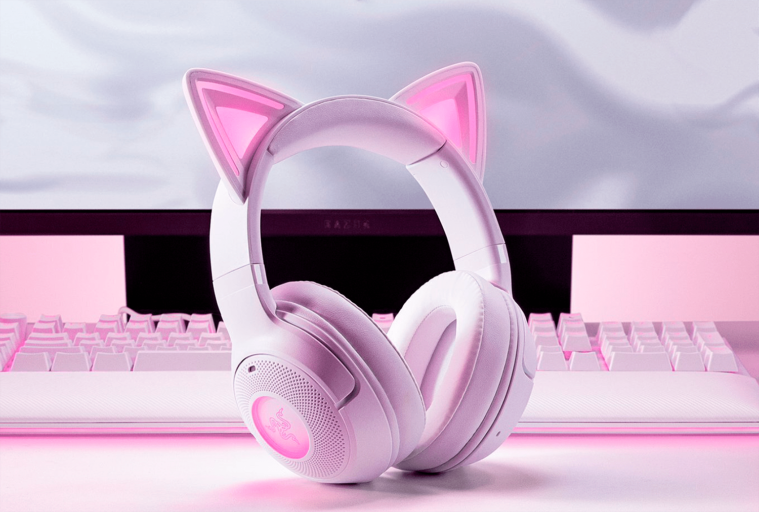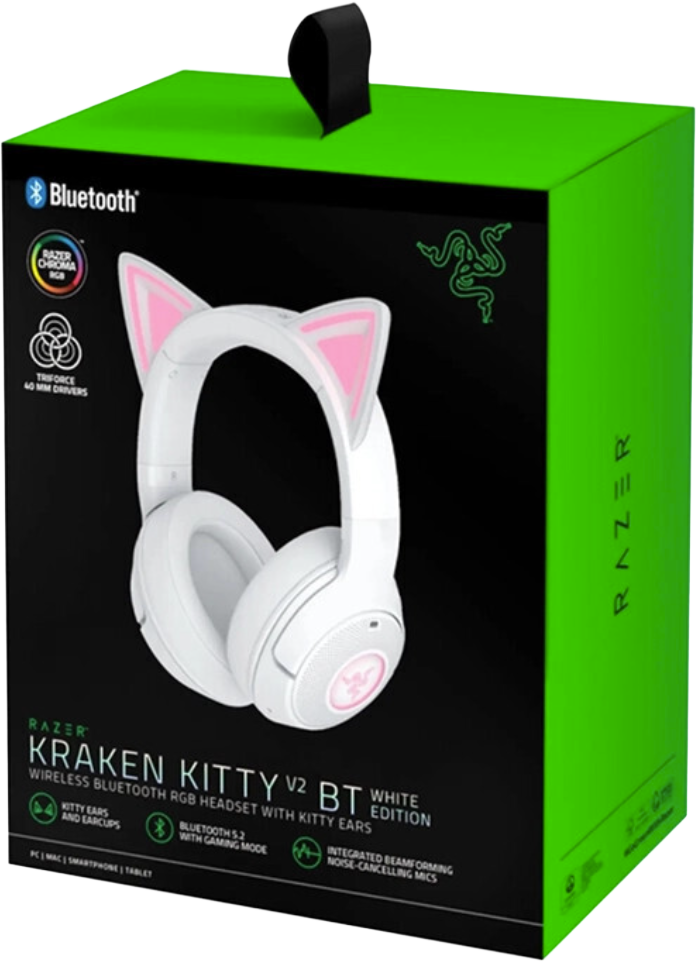 Razer Kraken Kitty V2 - langattomat pelikuulokkeet, jotka ilmentävät persoonallisuuttasi Tuo esiin oma kissamainen tyylisi missä tahansa Razer Kraken Kitty V2 -Bluetooth-kuulokkeilla, jotka on suunniteltu erityisesti pelaajille ja striimaajille. Näissä langattomissa kuulokkeissa yhdistyvät huipputeknologia, mukautettava ulkonäkö ja erinomainen äänenlaatu, mikä tekee niistä täydellisen valinnan sekä intensiivisiin pelisessioihin että IRL-lähetyksiin.