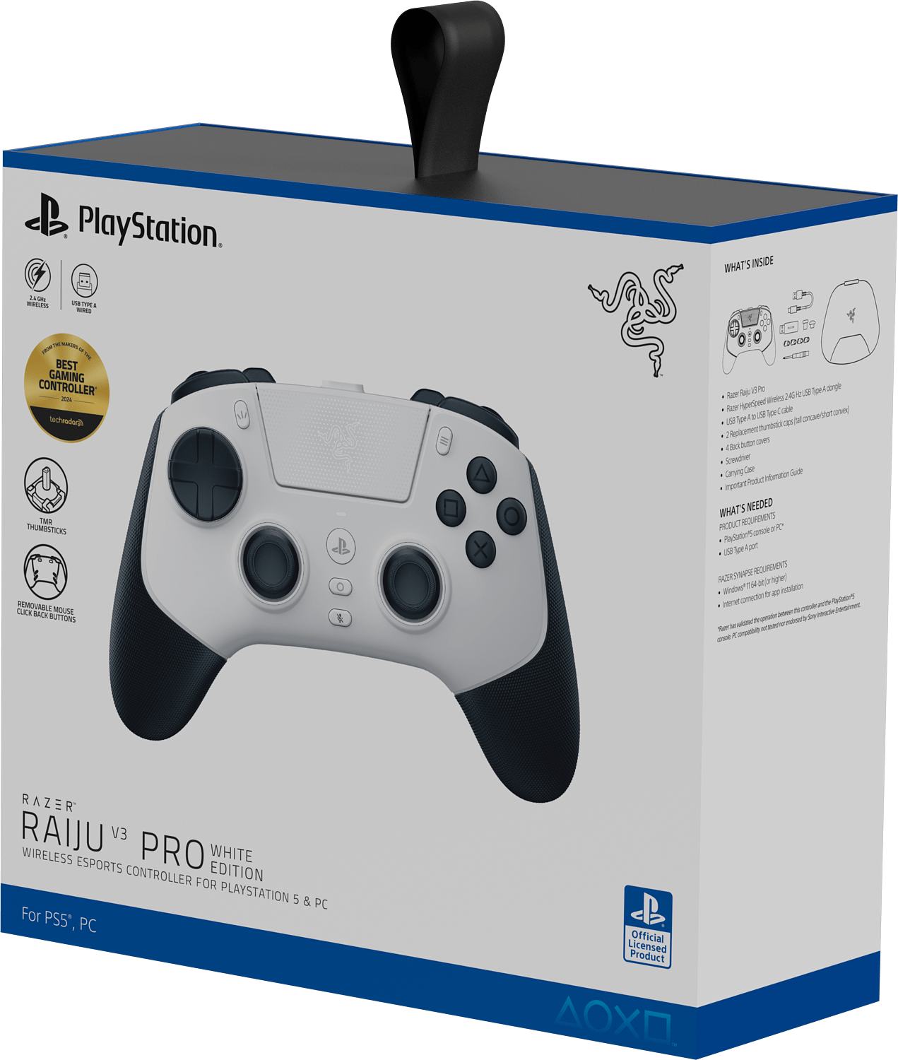 Laajennettavuuden ja räätälöitävyyden saralla Raiju V3 Pro ei jätä toivomisen varaa: mukana on useita vaihdettavia elementtejä, kuten tatit ja pelikahvat (paddlet), sekä ohjelmoitavat napit Razer Synapse 4 -ohjelmiston kautta. Näin pelaaja voi rakentaa ohjaimensa juuri omaan pelityyliin.