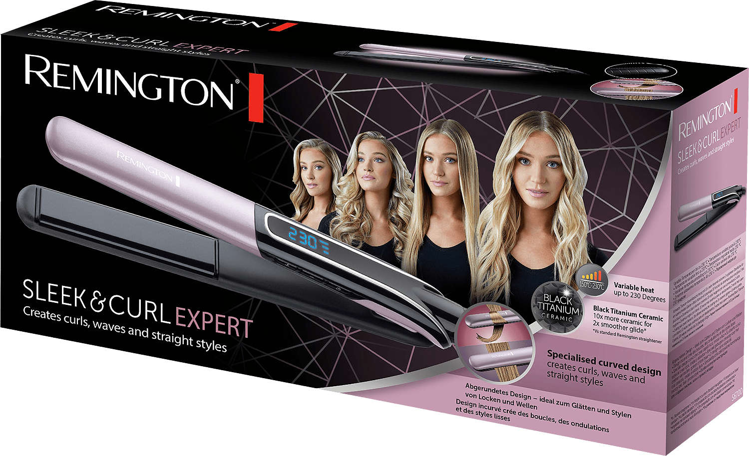 Remington S6700 Sleek & Curl Expert -muotoiluraudalla onnistuu helposti ja nopeasti hiusten kihartaminen, suoristaminen ja muotoilu. Ainutlaatuinen Black Titanium-pinnoite. 10-kertainen keraaminen pinnoite liukuu hiuksissa tasaisesti ilman kitkaa. Muotoilulevyjen pyöristetyt reunat helpottavat muotoilua. Levyjen reunassa on myös ohjaimet, jotka pitävät hiukset levyjen ympärillä hiuksia kihartaessa.