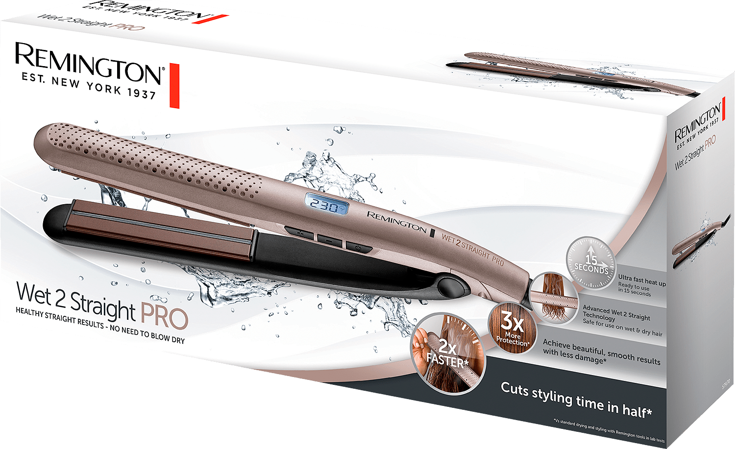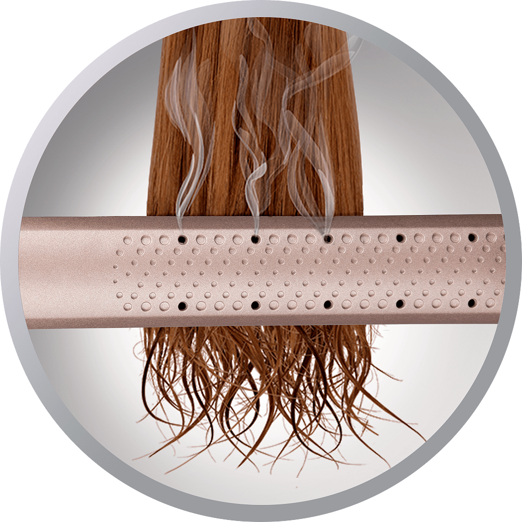 Innovatiivinen Wet2Straight-teknologia hyödyntää kosteuden tunnistavaa höyryaukkojärjestelmää, joka mahdollistaa hiusten suoristamisen jopa kosteina. Näin säästät aikaa ja vältät turhaa lämpökuormitusta hiuksillesi.