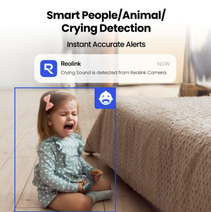 Kameran päivitetty AI-teknologia tunnistaa ihmiset, lemmikit ja vauvan itkun, mikä vähentää vääriä hälytyksiä ja parantaa turvallisuutta. Saat välittömiä ilmoituksia, kun kamera havaitsee liikettä tai kuulee itkua, joten voit reagoida nopeasti. Tämä ominaisuus on erityisen hyödyllinen lapsiperheille ja lemmikkien omistajille, sillä se tuo mielenrauhaa ja varmistaa, että tiedät aina, mitä kotona tapahtuu.