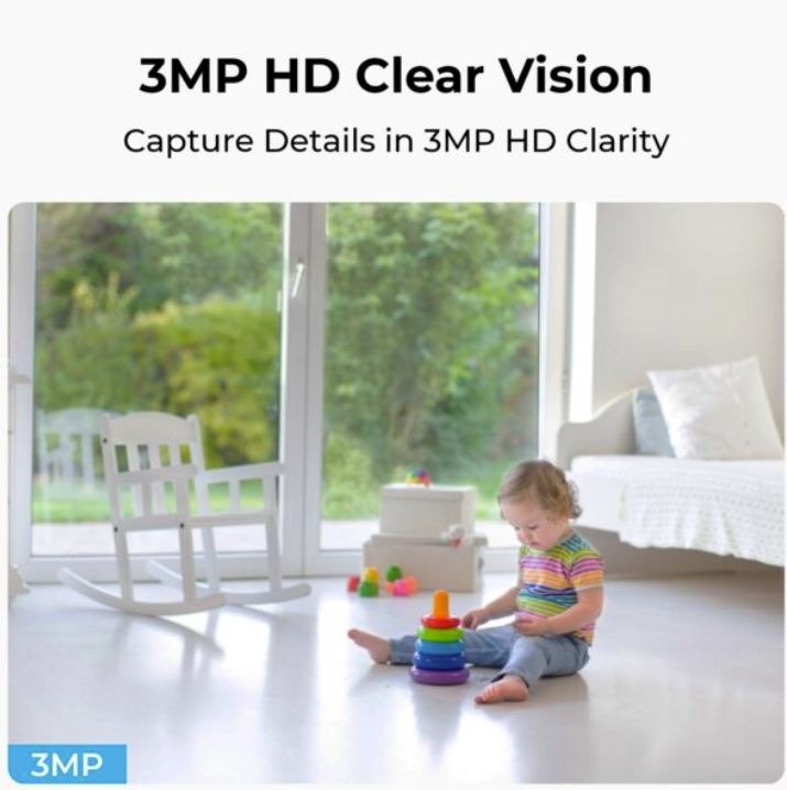 Reolink E321 tallentaa Super HD -videoita 2304×1296 (3MP) -tarkkuudella, mikä varmistaa terävät ja yksityiskohtaiset kuvat. Kahdeksan infrapunavalon ansiosta kamera näkee jopa 12 metrin päähän pimeässä, joten valvonta jatkuu keskeytyksettä myös yöllä. Näin voit olla varma, että kotisi on turvassa ympäri vuorokauden.
