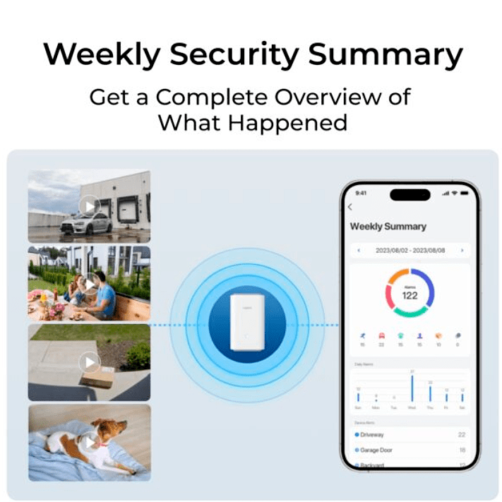Wi-Fi 6 tarjoaa nopean yhteyden ja vakaan suoratoiston kaikkiin liitettyihin kameroihin. Laitteessa on integroitu sireeni, joka aktivoituu, kun kamera tunnistaa ihmisen, ajoneuvon tai eläimen. Lisäksi käytettävissä on 11 esiasetettua hälytysääntä sekä 5 mukautettavaa äänivalintaa. Jopa 16 MP:n live-kuva ja tallenteet tarjoavat erittäin tarkkaa näkyvyyttä tärkeisiin tapahtumiin.