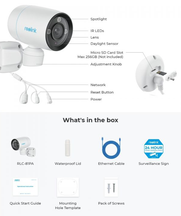 Reolink RLC-81PA tarjoaa helpon Plug & Play -asennuksen Power over Ethernet -teknologian ansiosta. Yksi kaapeli hoitaa sekä virran että datan, mikä poistaa huolen epävakaista WiFi-yhteyksistä. Lisäksi kamera on suunniteltu kestämään ankarat sääolosuhteet, joten se sopii sekä sisä- että ulkokäyttöön. IP67-sertifioituna se kestää rankkasateen, tuulen ja kylmemmätkin lämpötilat.