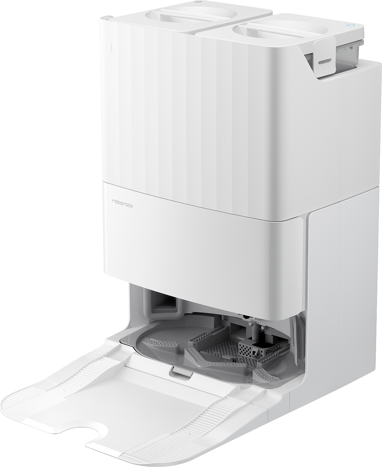 QR 798:n monitoimitelakka toimii kuin henkilökohtainen huoltoasema robotillesi. Se tyhjentää automaattisesti pölysäiliön 2,7 litran pölypussiin, mikä tarkoittaa jopa seitsemän viikkoa siivousta ilman manuaalista tyhjennystä. Telakka pesee ja kuivaa mopit kolmivaiheisella prosessilla, joka jäljittelee pesukoneen toimintaa: ensin hidas esipesu, sitten keskinopea huuhtelu ja lopuksi nopea linkouskuivaus. Tämän jälkeen mopit kuivataan huoneenlämpöisellä ilmalla, mikä pitää ne raikkaina ja hajuttomina. Telakka täyttää automaattisesti robotin vesisäiliön ja sen irrotettava pohja tekee puhdistuksesta helppoa.