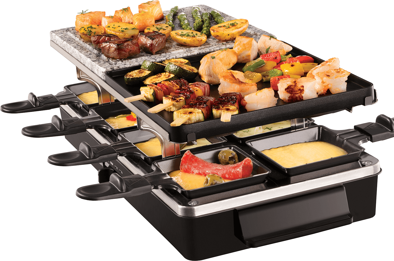 Raclette-grillillä onnistuu herkullinen ateria, ja se toimii myös erinomaisena ohjelmanumerona illanvietossa. Sveitsin suosittu ruokalaji vie sinut Alppien tunnelmaan. Jokainen pääsee itse osallistumaan ruoan valmistukseen, ja saa tehtyä itselleen kätevästi haluamansa annoksen. Isompikin porukka voi nauttia yhdessäolosta.