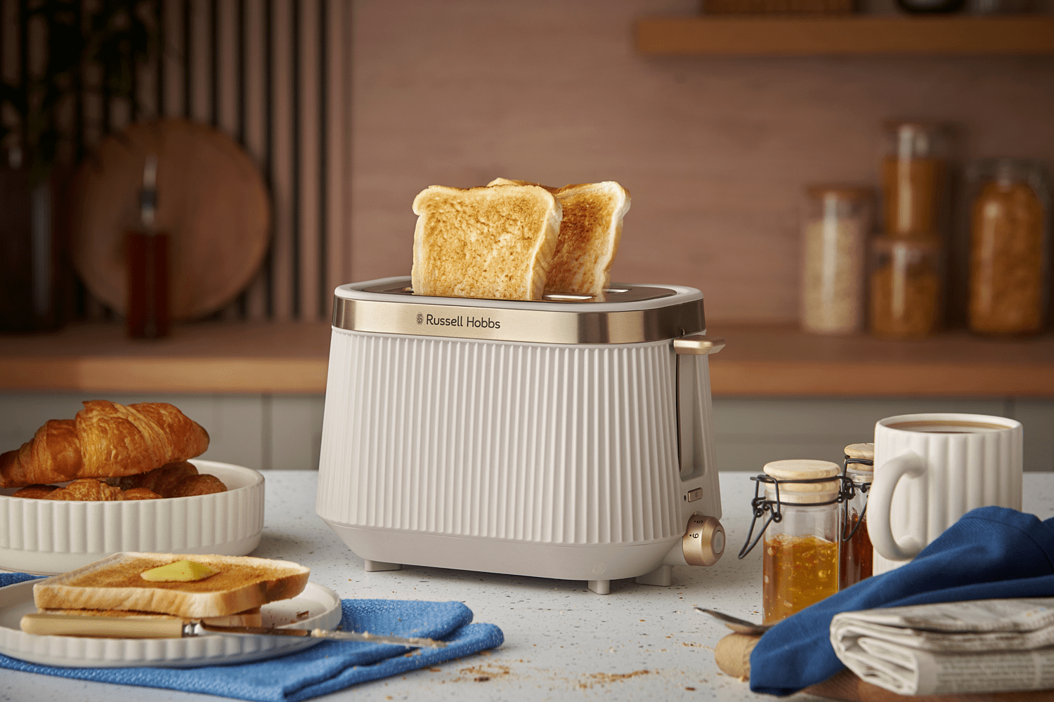 Russell Hobbs Brontë -leivänpaahdin tuo keittiöösi modernia eleganssia. Uurrettu pinta yhdistettynä ruostumattoman teräksen yksityiskohtiin tekee siitä näyttävän lisän työtasolle. Se ansaitsee paikkansa esillä.