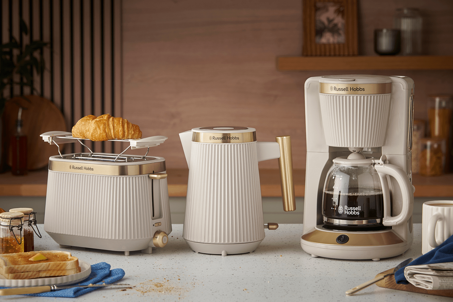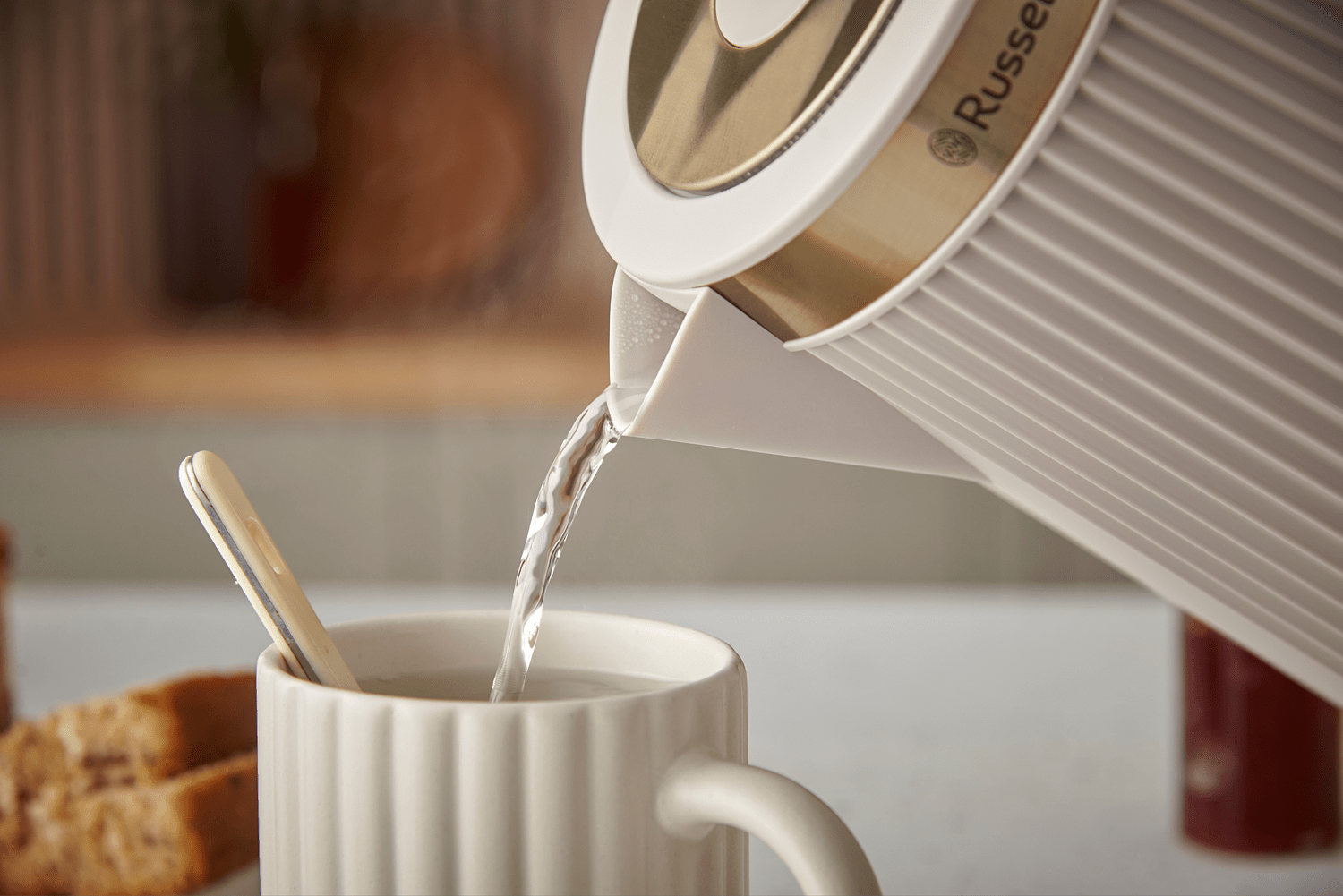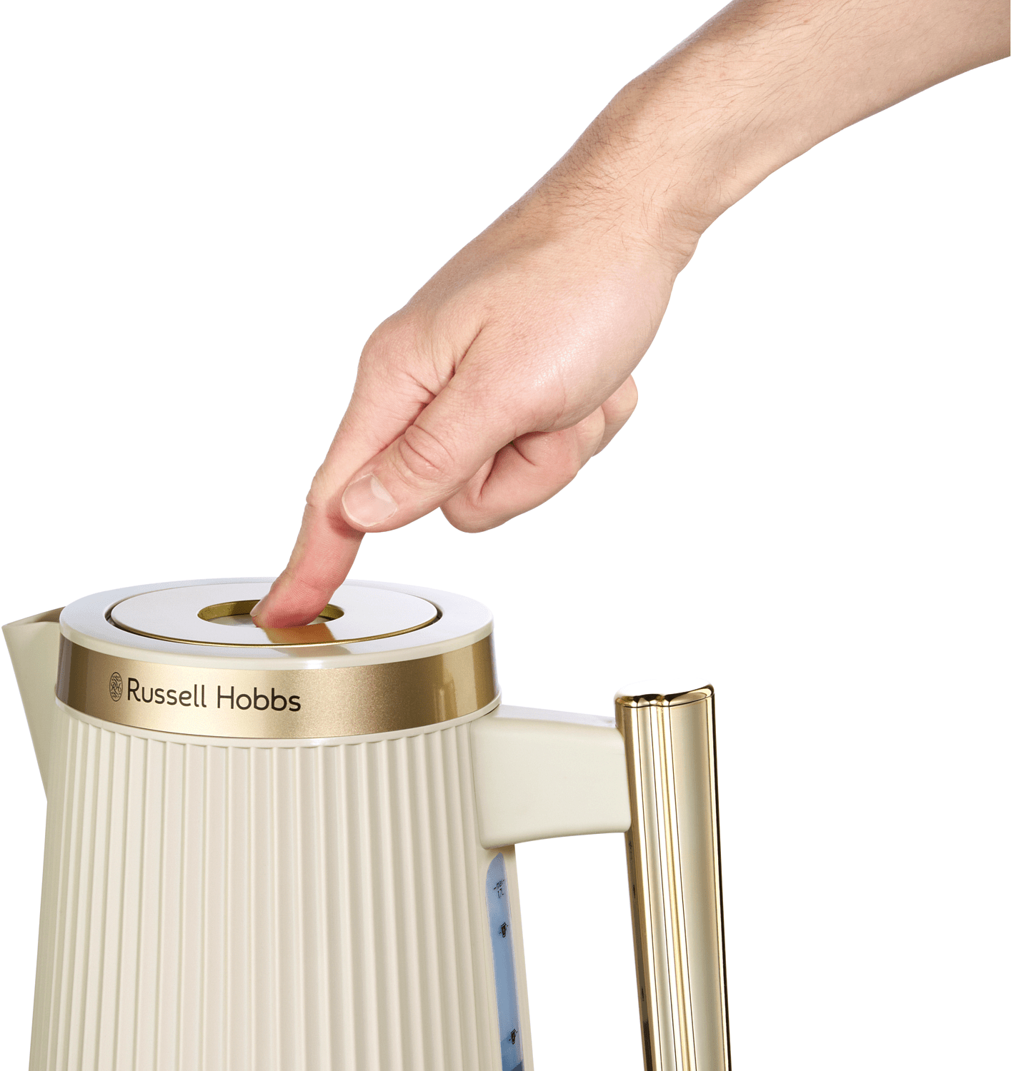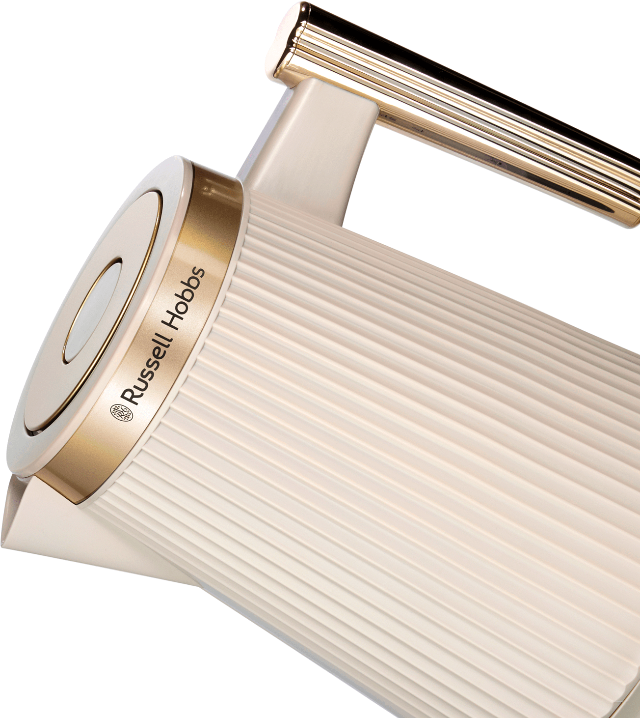 Russell Hobbs Brontë -vedenkeitin tuo keittiöösi modernia eleganssia. Uurrettu pinta ja kiiltävät kromiyksityiskohdat tekevät siitä näyttävän katseenvangitsijan. Sisäinen valaistus viimeistelee kokonaisuuden ja tuo ripauksen luksusta arkeen.