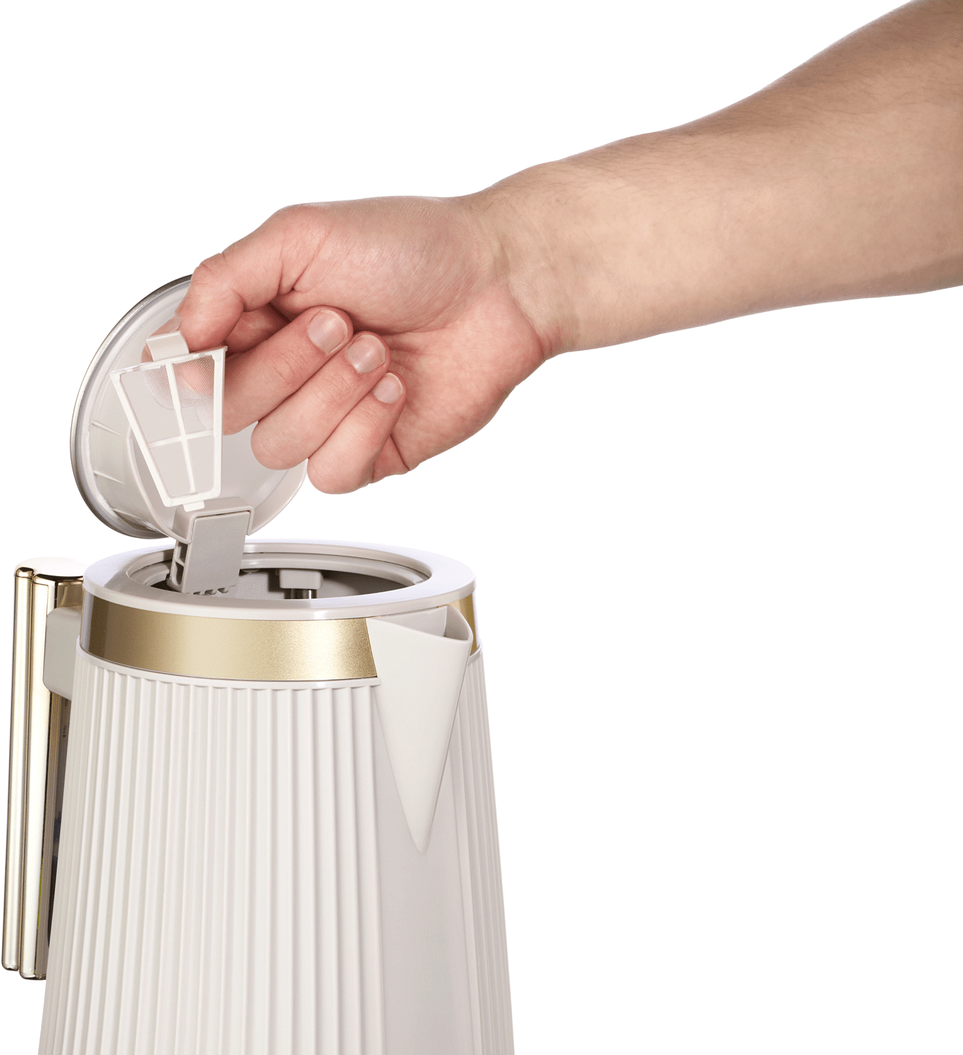 Tilava 1,7 litran vetoisuus riittää helposti useamman kupillisen keittämiseen kerralla - täydellinen aamuhetkiin tai iltapäivän teehetkiin. Yhdellä painalluksella avautuva kansi tekee täyttämisestä nopeaa ja vaivatonta.