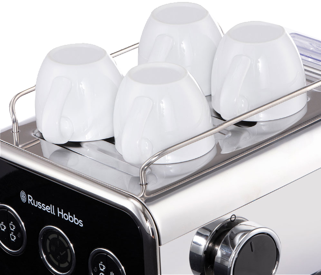 Russell Hobbs espressokeitin on erinomainen valinta hyvän kahvin ystäville. Nauti tuoreesta barista-tyylisestä espressosta milloin tahansa. Keittimen 15 barin paine tuottaa vahvan ja tasaisen espresson - täydellinen niille aamuille, kun tarvitset hyvää kahvia aloittaaksesi päiväsi. 15 barin painetta pidetään optimaalisena painetasona laadukkaalle espressolle. Keittimessä on myös toiminto, joka pitää kupin lämpimänä kahvin valmistumista odottaessa. Kupin lämmittimeen mahtuu mukavasti 4 kuppia.