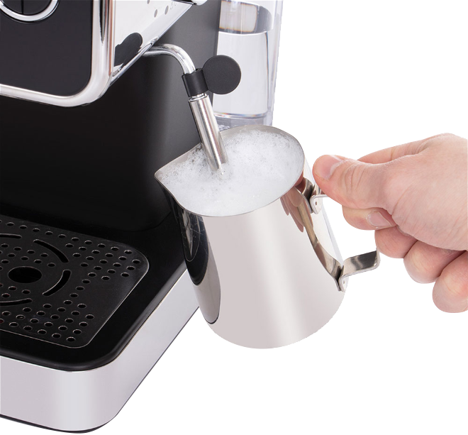 Maidonvaahdotin vaahdottaa maitoon juuri oikean rakenteen. Jos haluat maitovaahtoa, jossa on isoja kuplia, pidä suutinta juuri maidon pinnan alapuolella ja tee kannulla pyörivää liikettä. Keittimessä on läpinäkyvä irrotettava vesisäiliö, josta on helppo tarkistaa veden määrä.
