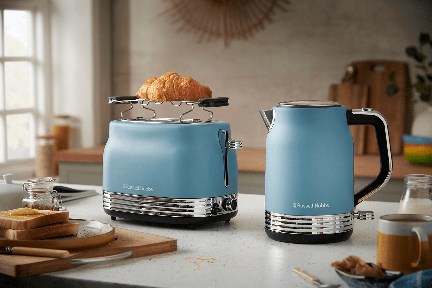 Russell Hobbs Retro Blue -leivänpaahdin tuo keittiöösi raikkaan ilmeen. Tyylikäs sininen mattapinta ja kiiltävät yksityiskohdat tekevät siitä näyttävän sisustuselementin, joka sopii mihin tahansa keittiöön.