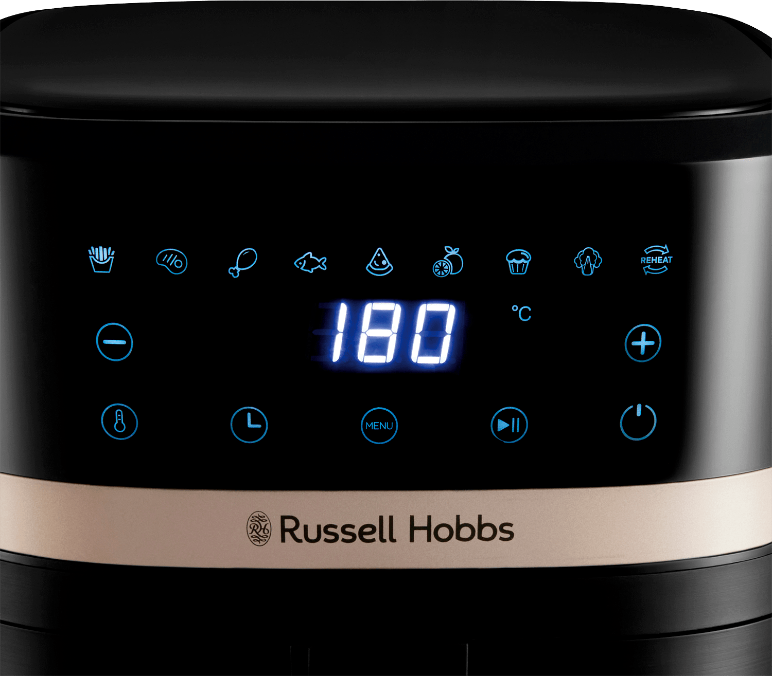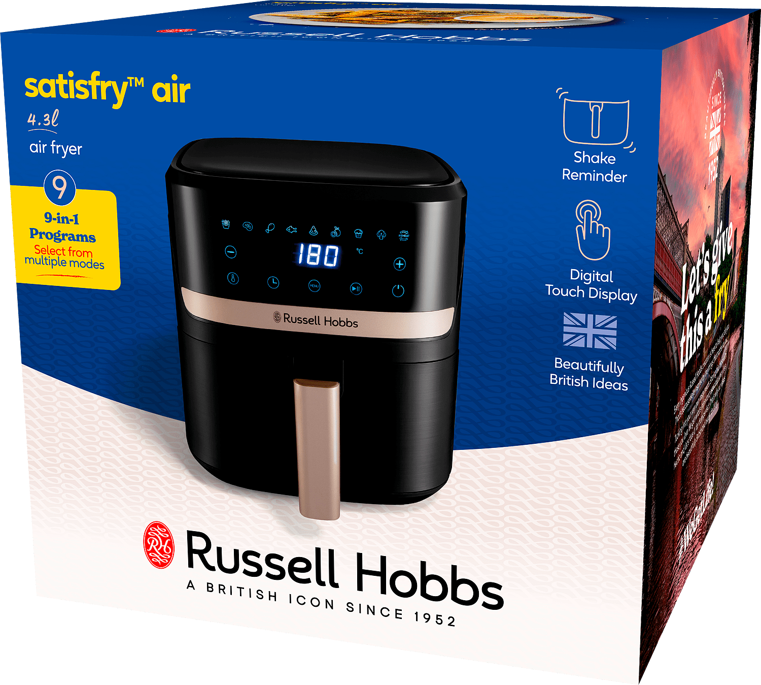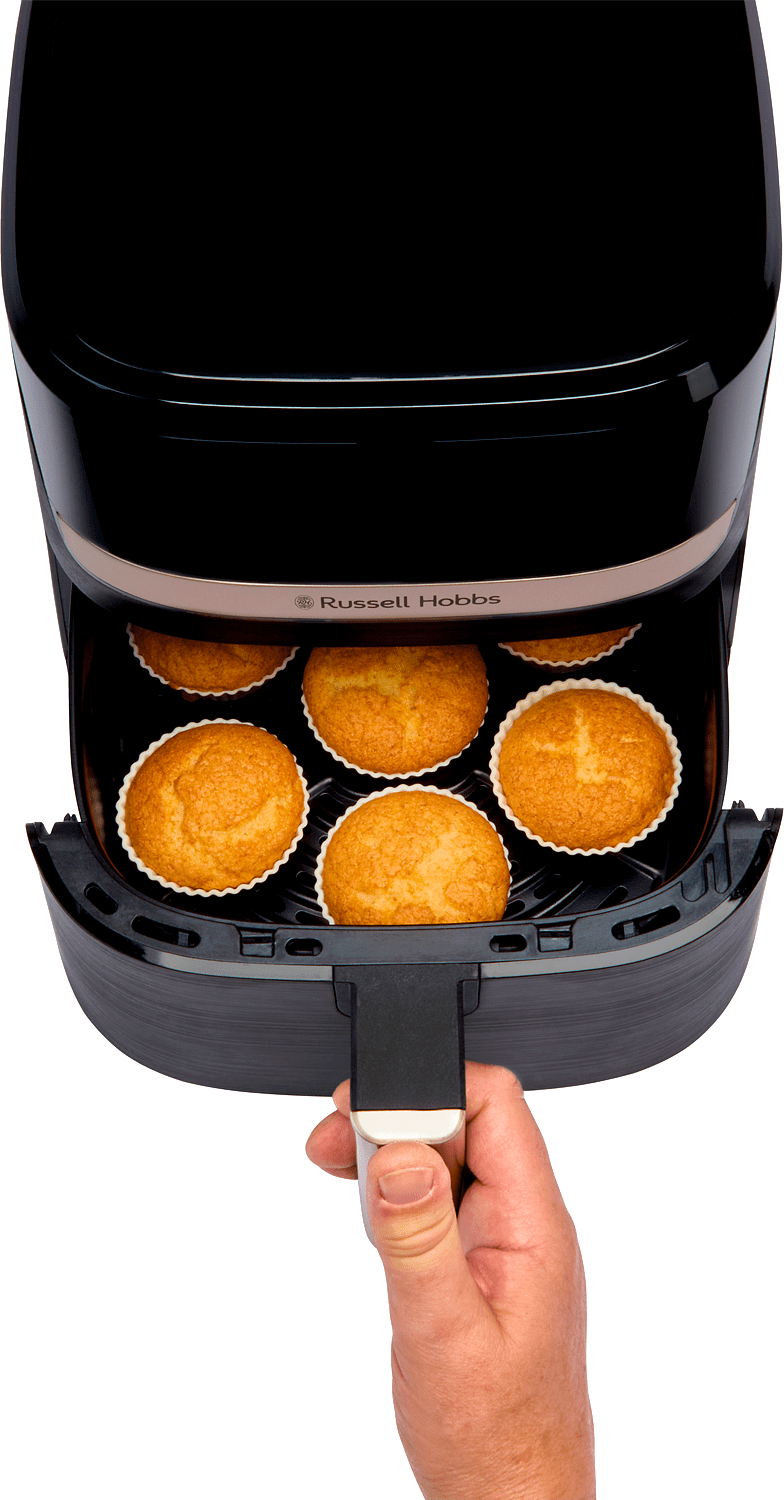 Russell Hobbs Satisfry Air 4,3 litran airfryer on täydellinen valinta, kun haluat valmistaa ruokaa nopeasti ja vaivattomasti. Tämä laite sopii erinomaisesti niin eilisten tähteiden lämmittämiseen kuin rapean kanan valmistamiseen alusta alkaen. Sen samppanjansävyiset yksityiskohdat tuovat modernia ilmettä klassisen mustaan runkoon, joka sulautuu saumattomasti mihin tahansa keittiöön.