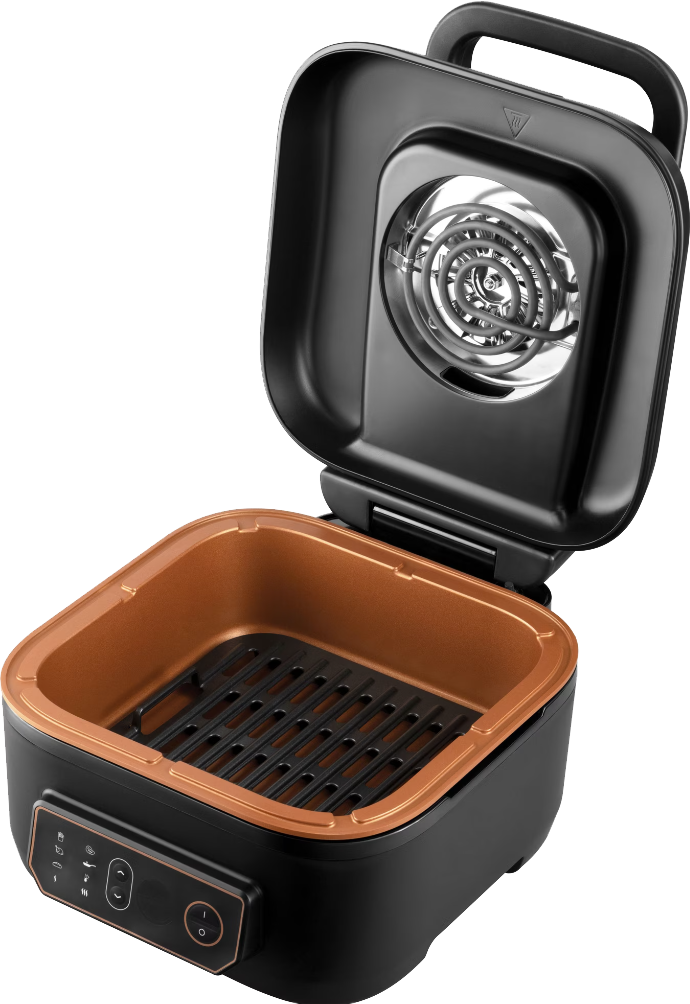Ilmafriteerauksessa ruoka valmistuu nopeasti ja pysyy mehukkaana. Monitoimikeitin kierrättää tehokkaasti kuumaa ilmaa. Tarvitset paistettujen suosikkiruokiesi valmistamiseen vain vähän, tai et lainkaan öljyä.