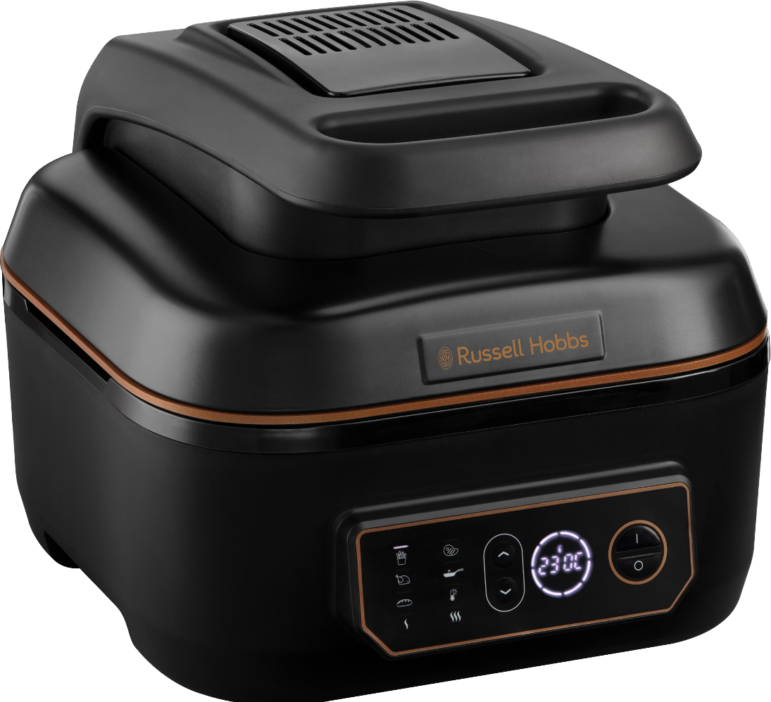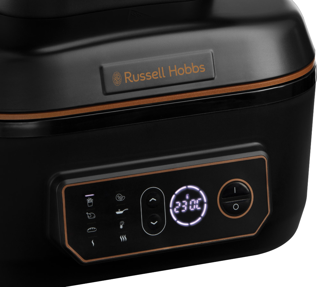 Russell Hobbs SatisFry Air & Grill- monitoimikeitin kierrättää tehokkaasti ilmaa jopa 260 °C:n lämpötilassa. Kun grillaat, lopputuloksesta tulee täydellinen ylhäältä ja alhaalta tulevan tasaisen lämmön ansiosta.
