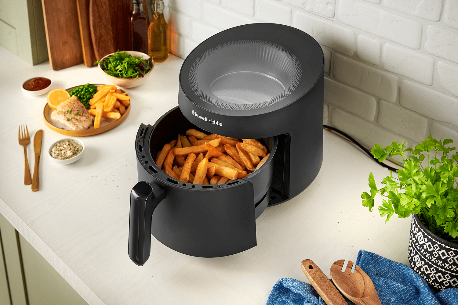 Russell Hobbs Satisfry Panoramic -airfryer on keittiösi uusi suosikki. Tyylikäs lasikansi ei ole pelkästään näyttävä, vaan sen avulla voit myös tarkkailla ruoan kypsymistä ja varmistaa täydellisen lopputuloksen. Tämä monipuolinen laite tekee ruoanlaitosta helppoa ja herkullista.
