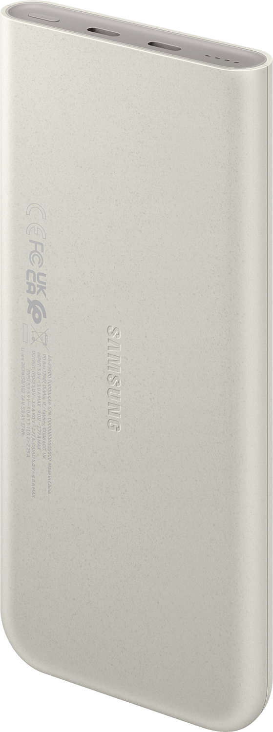 Ohut ja kevyt Samsung-varavirtalähde on valmistettu kierrätysmateriaalista. Ergonomisen muotoilun ansiosta powerbank näyttää tyylikkäälle ja tuntuu miellyttävälle kädessä. Järeänkokoisella 10 000 mAh:n vara-akulla lataat laitteet nopeasti. Varavirtalähteellä lataat puhelimet, tabletit sekä lisälaitteet, kuten kuulokkeiden latauskotelon.