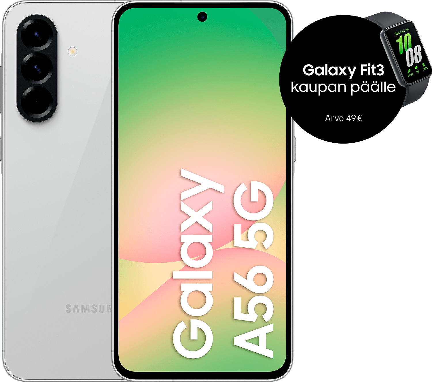 Osta Samsung Galaxy A56 -puhelin 2.12. - 28.12.2025 välisenä aikana, ja saat kaupan päälle Galaxy Fit3 -aktiivisuusrannekkeen (arvo 49 €)!