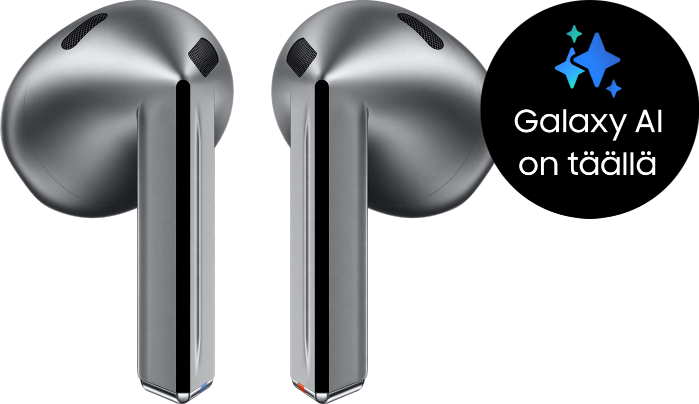 Samsung Galaxy Buds3 -kuulokkeet varmistavat yhteistyössä Galaxy AI:n kanssa, että kuuntelukokemuksesi ovat tasapainoisia ja vapaita ylimääräisistä häiriöistä. Vastamelutoiminto (ANC) vaimentaa sekä melun että tuulen. Vastaanottaessasi puheluita, sekä sinun että toisen henkilön ääni toistetaan selkeästi - hyvin koulutettu Galaxy AI pitää siitä huolen. Live Translate -toiminnolla voit kommunikoida ihmisten kanssa ilman yhteistä kieltä - saat reaaliaikaisen käännöksen käden käänteessä kuulokkeisiisi ja saat itse säilytettyä katsekontaktin. Sen sijaan, että lukisit tekstiä puhelimeltasi, saat käännettyä sisällön suoraan korvaasi. Käsiesi ollessa täynnä, Galaxy Buds3 -kuulokkeet ovat aina apunasi. Sen kun pyydät toistamaan soittolistan, soittamaan kaverille, navigoimaan määränpäähän tai lukemaan ääneen ostoslistan. Siinä vasta assistentti!