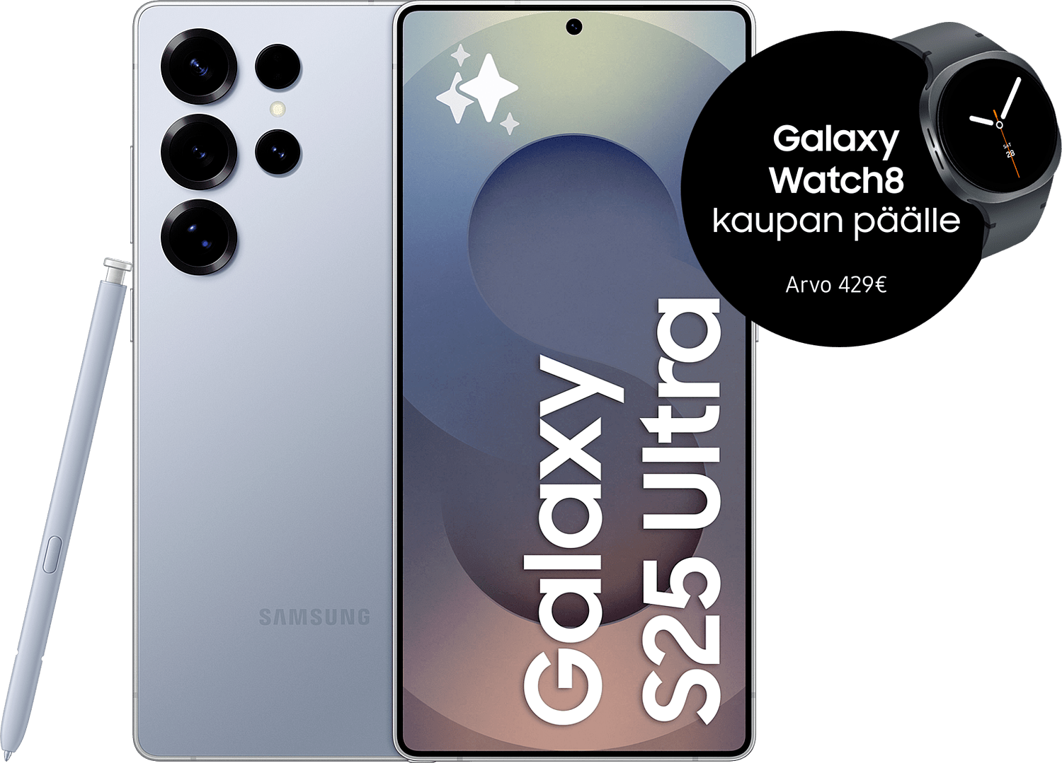 Osta Samsung Galaxy S25 Ultra -puhelin 2.12. - 23.12.2025 välisenä aikana, ja saat kaupan päälle Galaxy Watch8 40mm eSim -älykellon (arvo 429 €)!