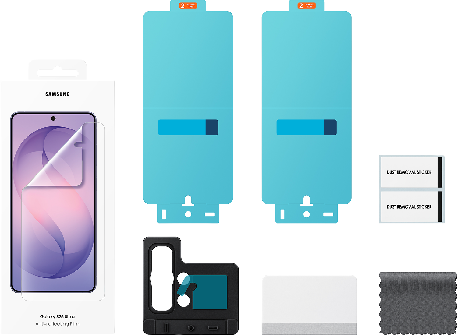 Samsung Anti-reflecting -näytönsuojakalvo parantaa näkyvyyttä vähentämällä heijastuksia sekä suojaa pölyltä ja sormenjäljiltä. Nauti kirkkaasta näytöstä ilman häiritseviä heijastuksia tai sateenkaari-efektejä ja pidä puhelimesi samalla siistinä ja puhtaana.