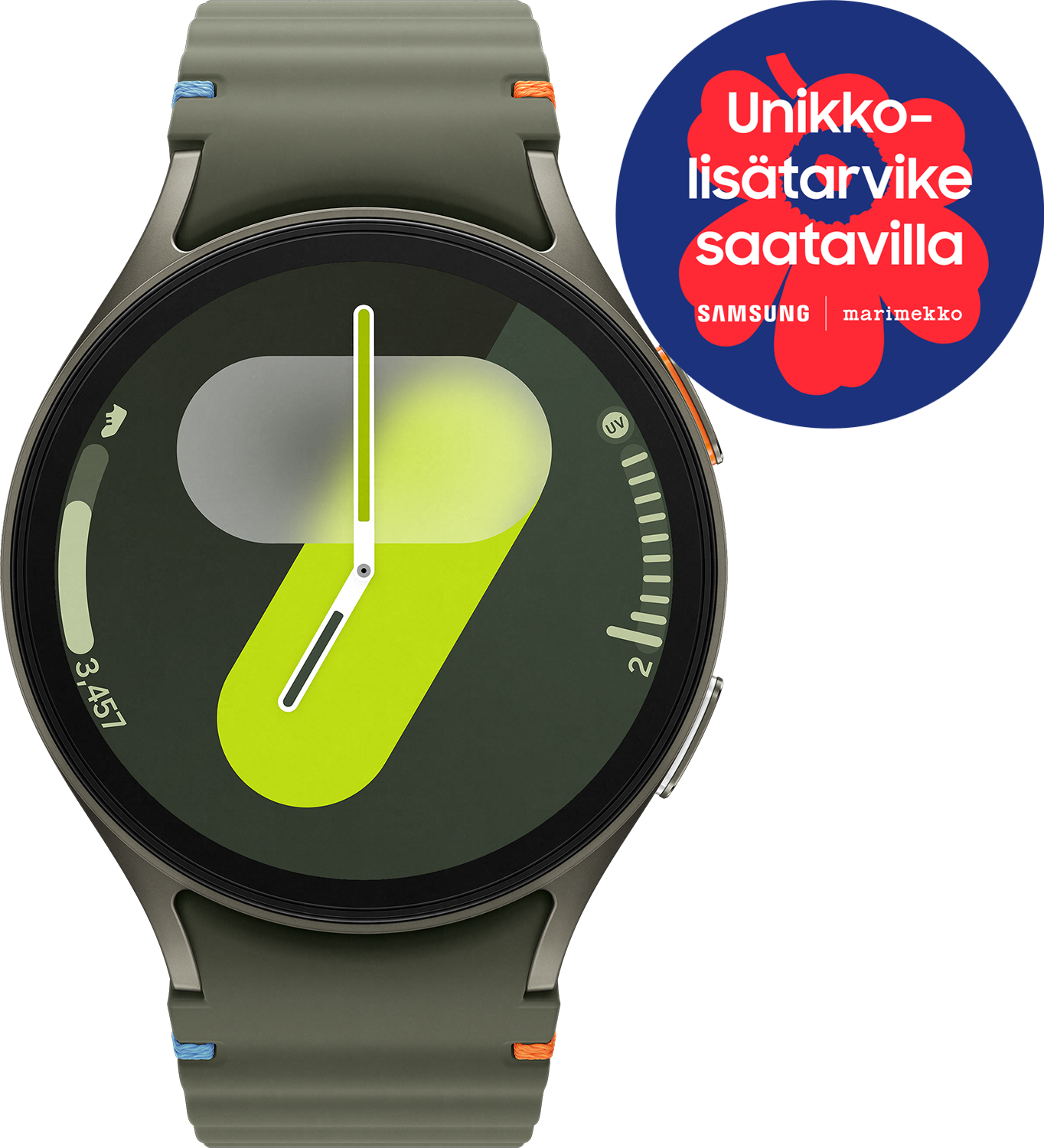 Galaxy Watch7 on tärkeä osa asuasi. Lukuisten kellotaulujen lisäksi tarjolla on myös paljon erilaisia rannekkeita, ja osassa on one-click-systeemi, jolla vaihdat lookin vaivattomasti kuhunkin päivään sopivaksi.