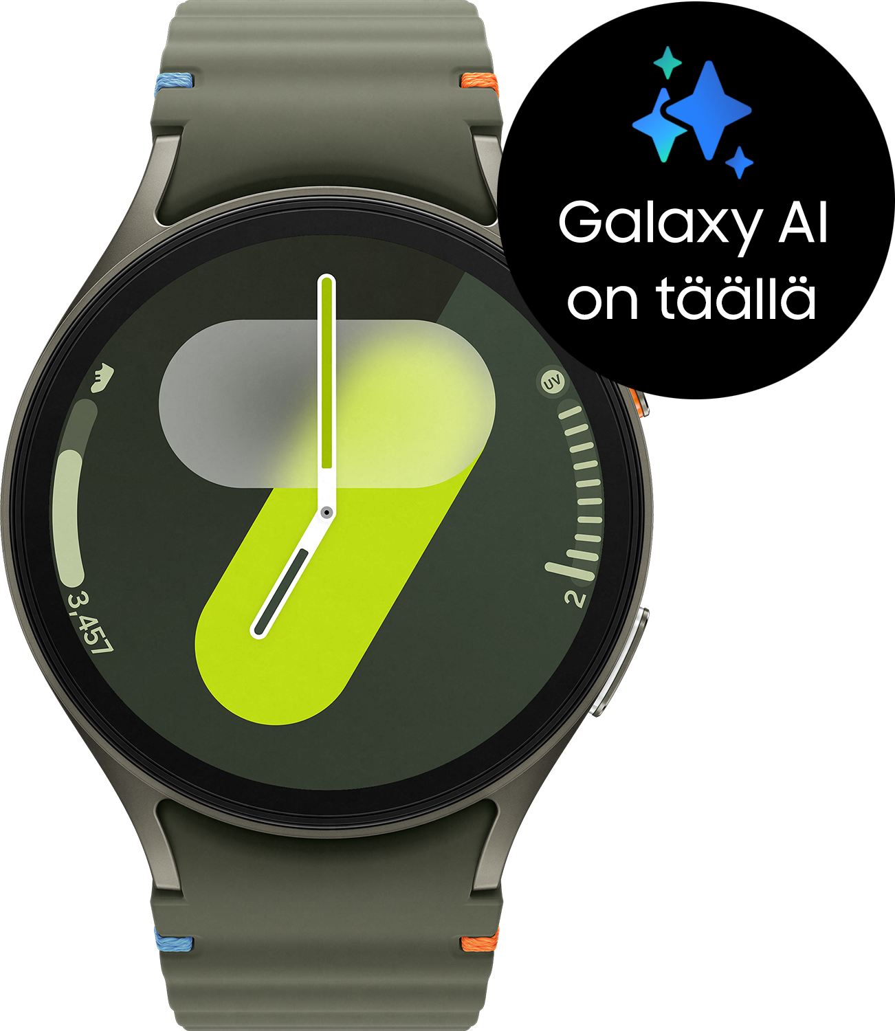 Galaxy Watch7:n Galaxy AI oppii tuntemaan sinut ja kehosi sitä paremmin mitä enemmän käytät kelloasi, ja saat tietoa ja ehdotuksia tukemaan hyvinvointiasi ja liikkumistasi. Energy Score näyttää unenlaatusi, fyysisen olotilasi ja ehdottaa joka päivä parhaita aktiviteettivaihtoehtoja. Booster Card analysoi tuloksiasi ja motivoi sinua saavuttamaan asettamasi tavoitteet. Tarkan sykemittauksen ansiosta saat selkeän käsityksen siitä, miten kehosi reagoi harjoitteluun. Voit helposti asettaa kelloon omat syketasosi ja treenata sitten omaan tahtiisi. Tai mikset kokeilisi rajojasi pyörän selässä FTP-testissä? Palautuminen on tärkeä osa treenaamista. Kun kellossasi on Galaxy AI, saat edistynyttä unen seurantaa ja räätälöidyn suunnitelman nukkumistottumustesi parantamiseksi. Galaxy AI helpottaa myös päivän muita askareita. Voit lähettää sillä automaattisia vastauksia tai sanella puheesi kellolle, joka tiivistää sen kirjoitetuksi tekstiksi. Älykkäämpää kelloa et löydä!