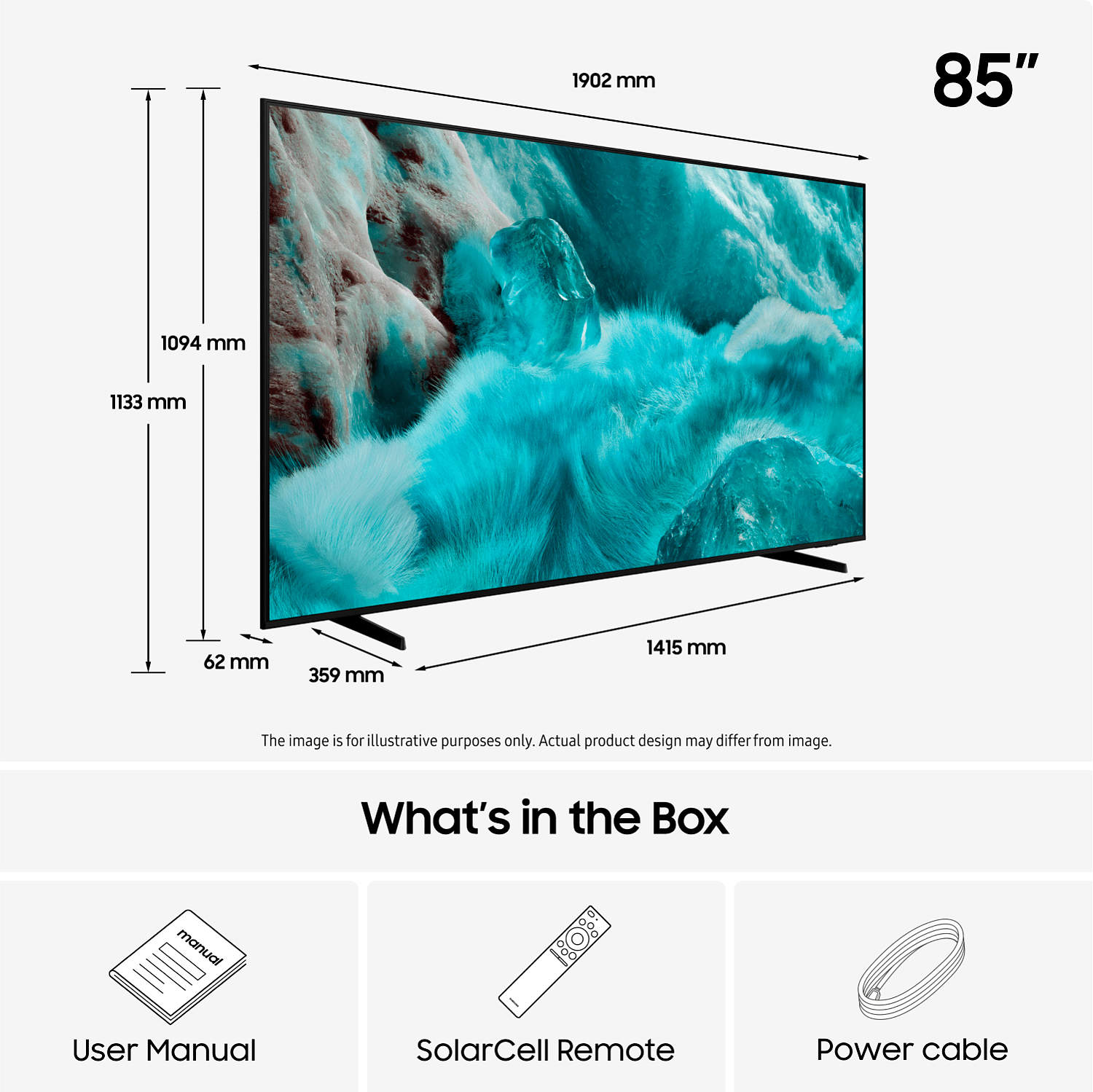 1901,2 x 1088,4 x 61,4 mm ja 32,5 kg - ilman jalustaa