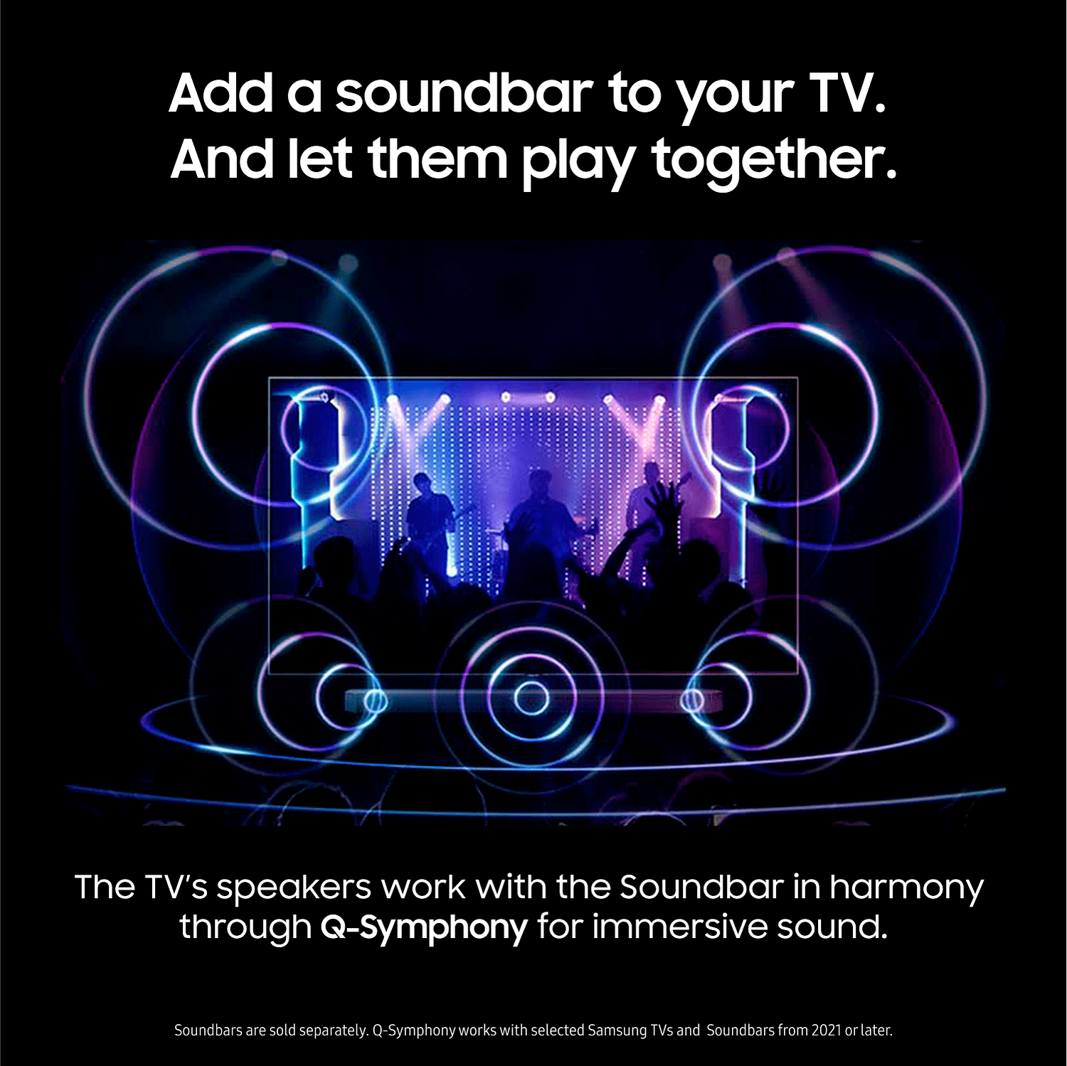 Q-Symphony yhdistää television ja yhteensopivan soundbarin kaiuttimet saumattomasti, luoden vaikuttavan surround-äänikokemuksen. Dolby Atmos ja SpaceFit Sound mukauttavat äänen huoneesi akustiikkaan. Soundbar myydään erikseen, mutta yhdessä ne tarjoavat elokuvateatteritasoisen äänen kotona.