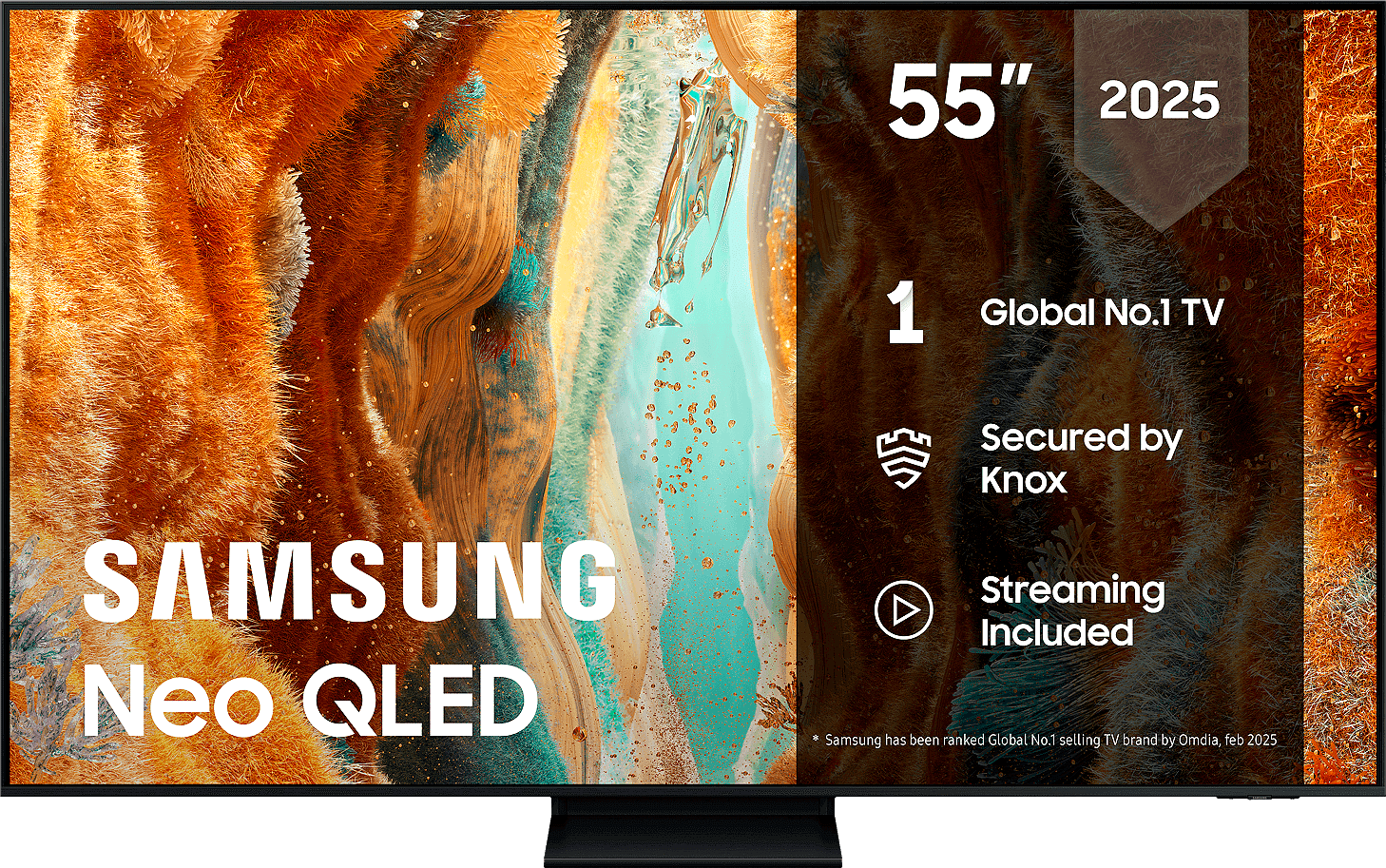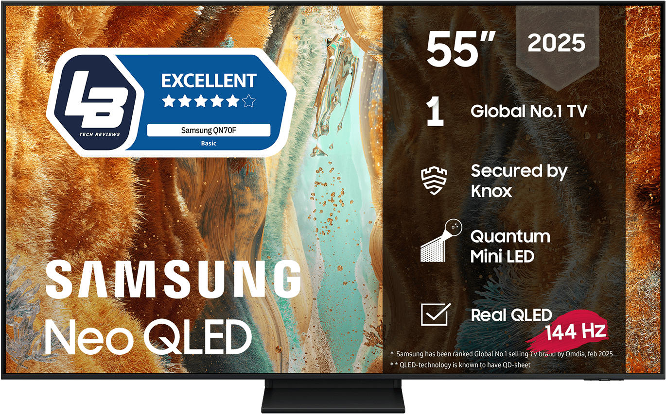 Samsung QN70F 4K Neo QLED MiniLED -älytelevisio yhdistää huipputeknologian, tekoälyn ja tyylikkään muotoilun tarjoten vertaansa vailla olevan katselukokemuksen. Neo QLED -näyttö, Quantum Matrix Technology Slim ja Mini LED -taustavalotekniikka takaavat tarkan valon- ja värinhallinnan. NQ4 AI Gen2 -prosessori hyödyntää 20 neuroverkkoa skaalaamaan sisällön lähes 4K-tarkkuuteen ja optimoimaan äänen ympäristön mukaan. Neo Quantum HDR, PANTONE Validated -värit ja 4K Ultra HD -resoluutio herättävät jokaisen kohtauksen eloon. Pelaajille tarjolla on 144 Hz:n HDMI-liitännät, FreeSync Premium ja Motion Xcelerator -teknologia, jotka takaavat sulavan pelikokemuksen. Tizen Smart TV -käyttöjärjestelmä tuo kaiken viihteen ja älykodin hallinnan yhteen paikkaan.