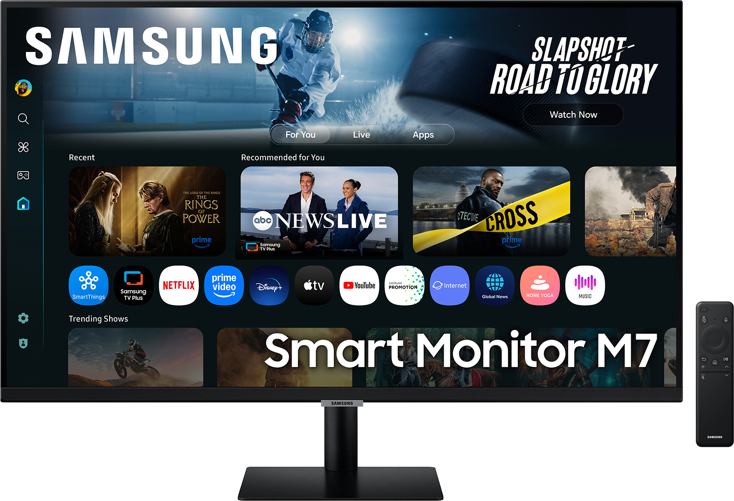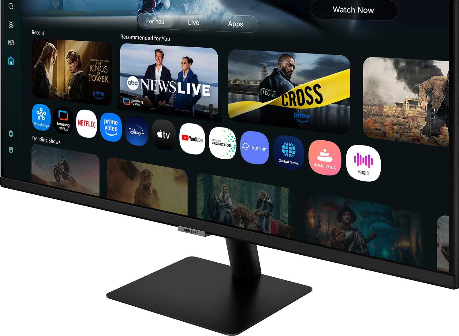 Samsung Smart M7 -näytöllä pääset käsiksi suosikkisisältöösi heti ilman erillistä tietokonetta tai TV-viritintä. Suoratoista suoraan näytöltä tai hyödynnä Samsung TV Plus -palvelua, joka tarjoaa live-kanavia ja tilattavaa viihdettä - kaikki yhdellä laitteella.