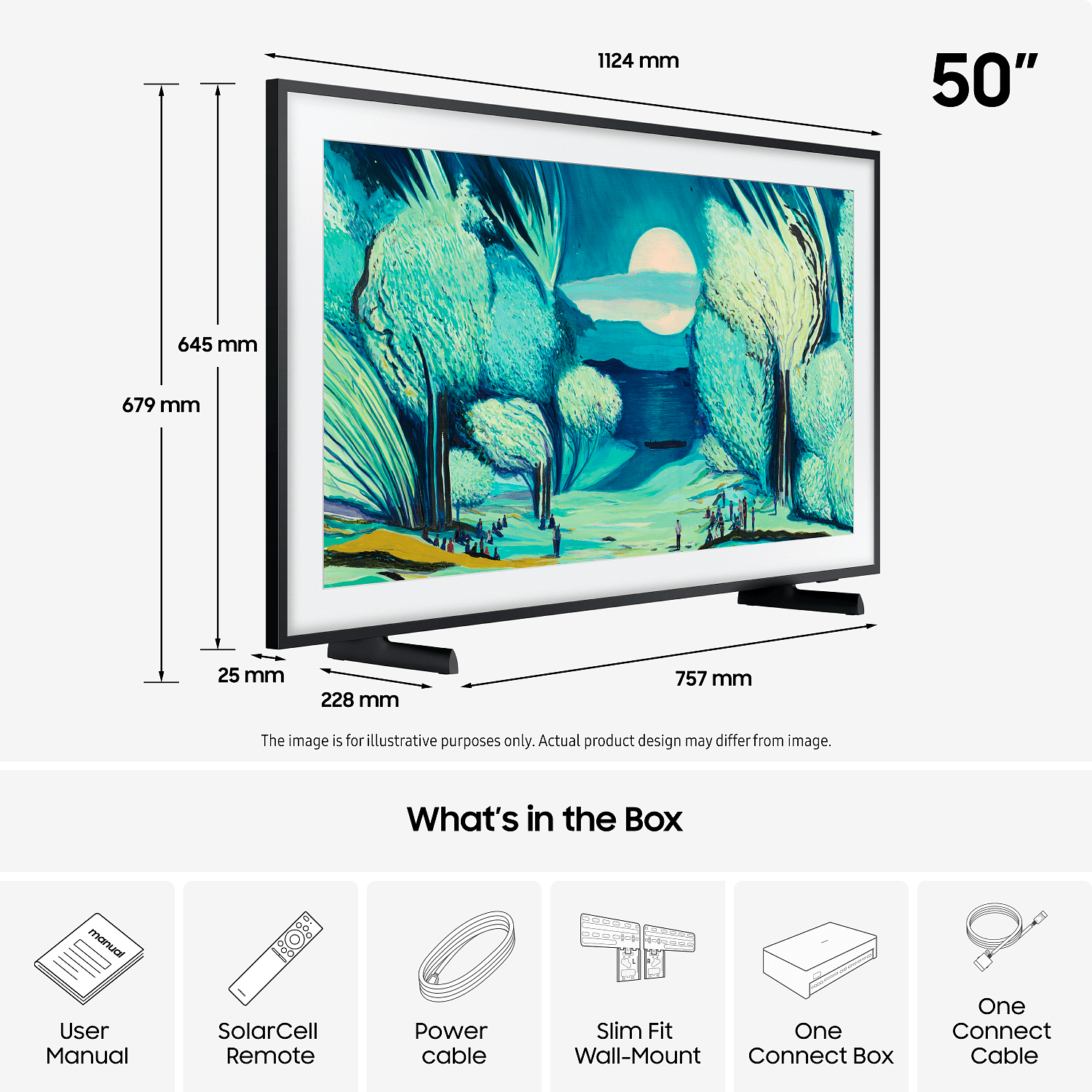 The Frame on suunniteltu näyttämään taululta. Sen ohut ja moderni muotoilu yhdistettynä Slim Fit -seinäkiinnikkeeseen mahdollistaa lähes saumattoman asennuksen. Mukautettavat kehykset eri väreissä ja muodoissa kiinnittyvät helposti magneeteilla, joten voit vaihtaa tyyliä hetkessä. Korkeussäädettävä jalusta mahdollistaa täydellisen sijoittelun ja tilan esimerkiksi soundbarille.
